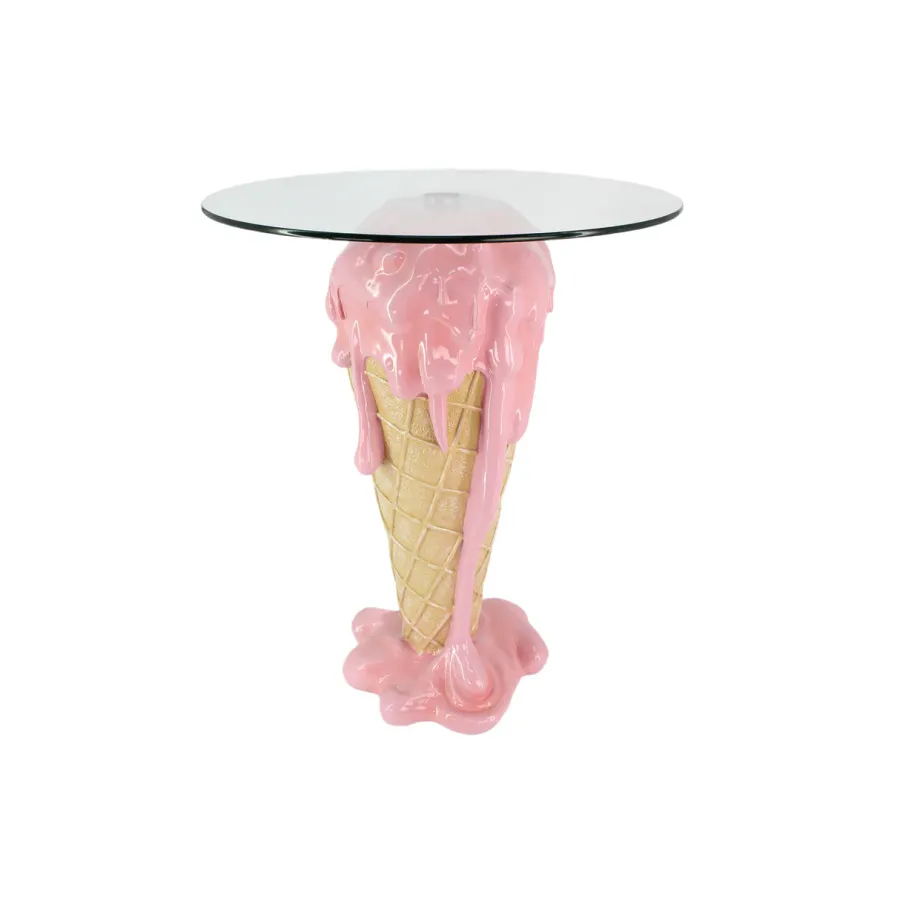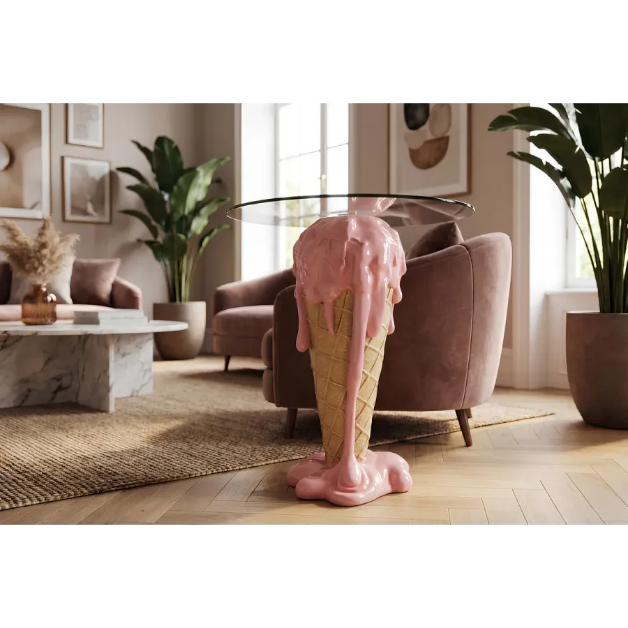Wprowadź do swojego salonu radosny, a zarazem wyrafinowany akcent dzięki stolikowi kawowemu ICE CREAM, łączącemu delikatną paletę różu i beżu z rzeźbiarskim, inspirowanym lodami wzorem. Wykonany ręcznie z wysokiej jakości żywicy poliestrowej i zwieńczony eleganckim szkłem hartowanym, ten wyrazisty mebel łączy w sobie kapryśny urok z codzienną praktycznością i nowoczesnym stylem.