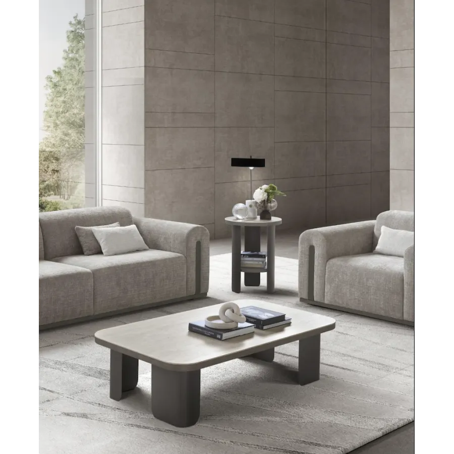 Stolik kawowy – z wyważoną, miękką linią i starannie dobranymi materiałami – doskonale wpisuje się w przestrzeń salonu. Jego minimalistyczna forma zachwyca lekkością, a zarazem dodaje wnętrzu wyrafinowanego charakteru. To idealna scena dla filiżanki espresso, ulubionej książki czy kwiatów w szkle.