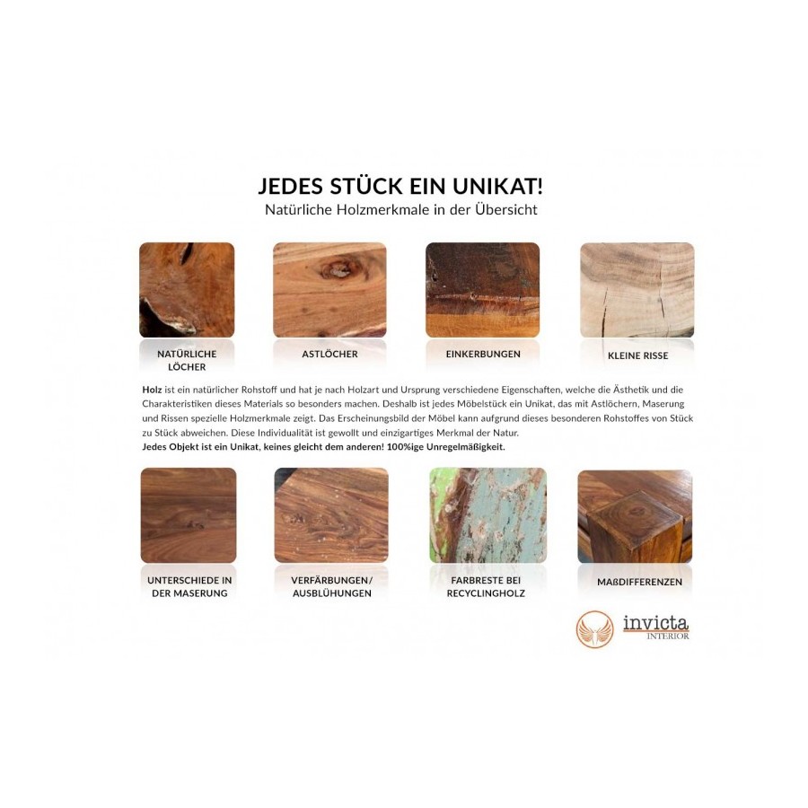 Charakterystyczne są różnice koloru, nierówności, przetarcia, rysy, różnorodne usłojenie w strukturze drewna. Cechy te wynikające z naturalnej pracy drewna nie są podstawą do złożenia reklamacji.