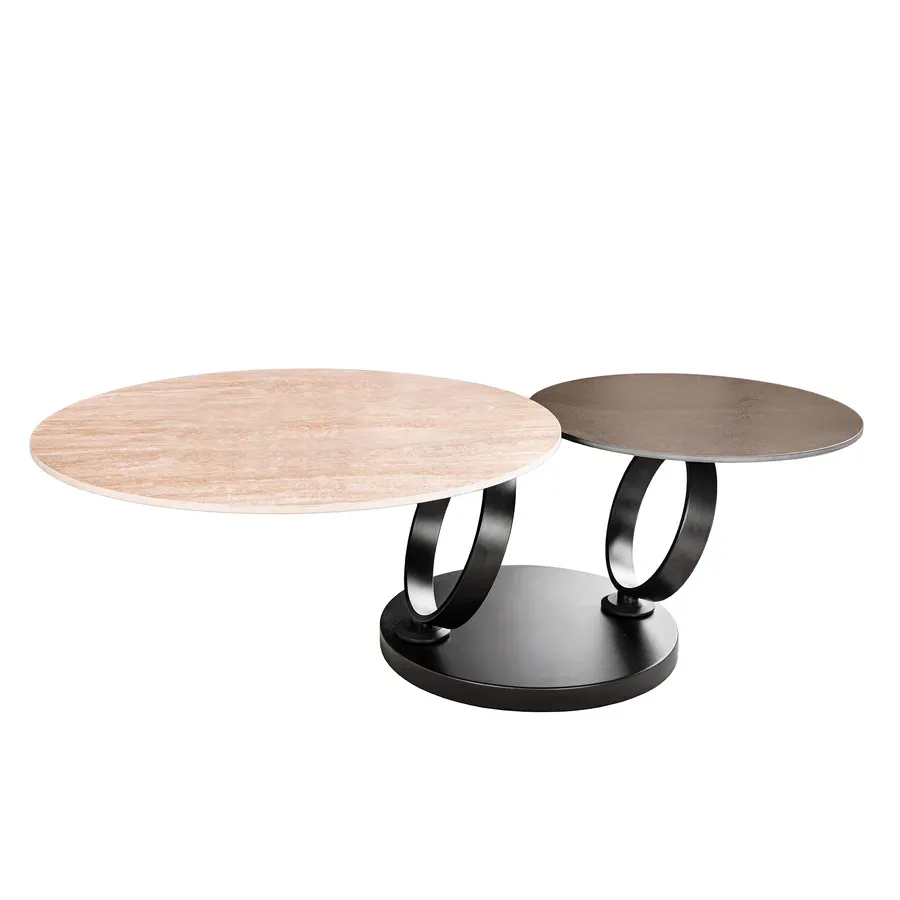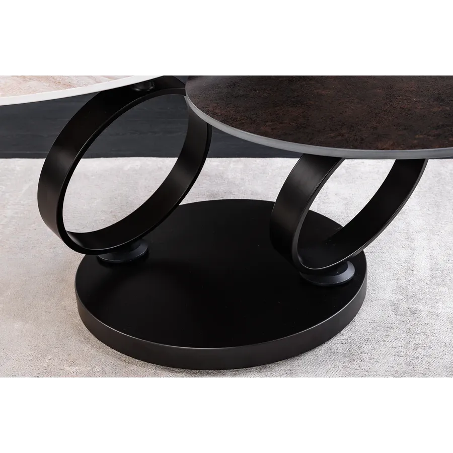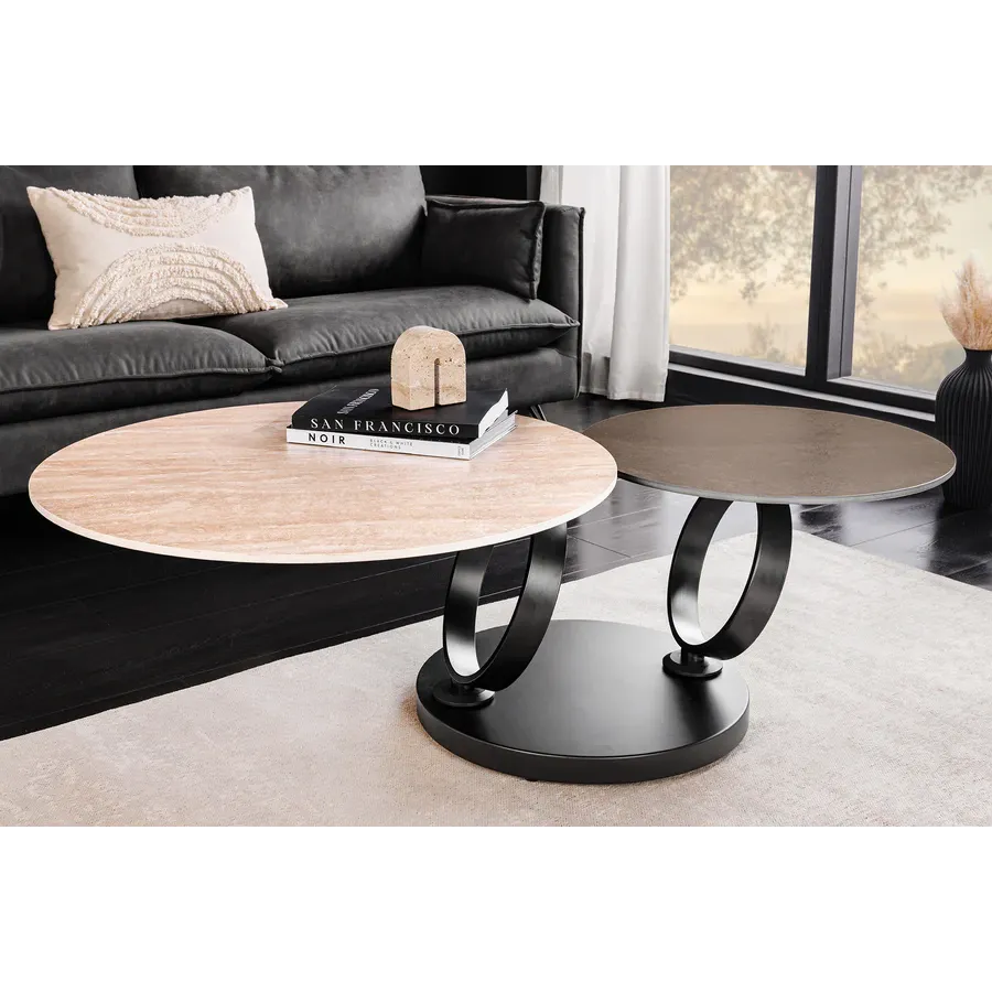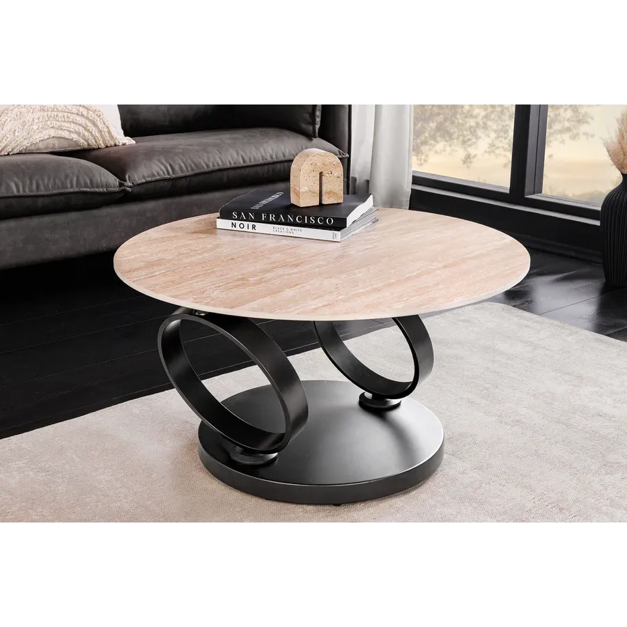 Invicta Stolik kawowy DANCING RINGS 80-135cm miedziany marmur czarna rama / 46316