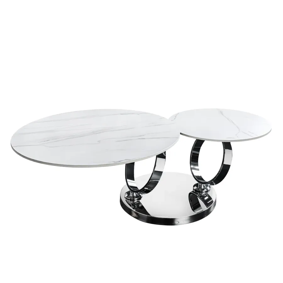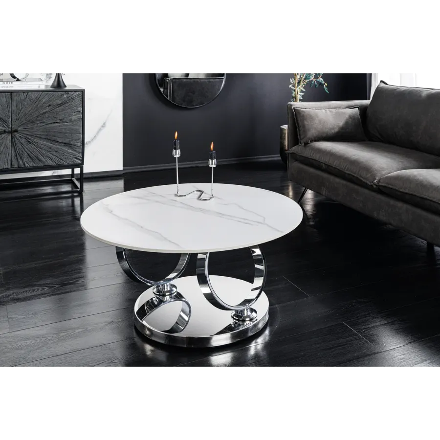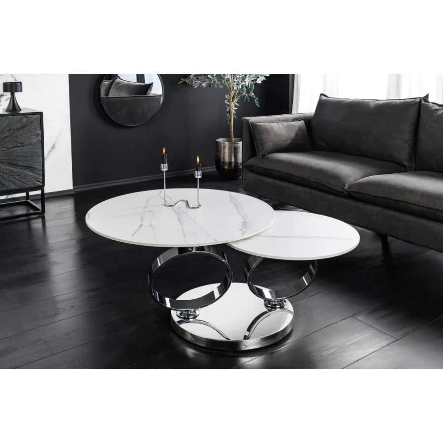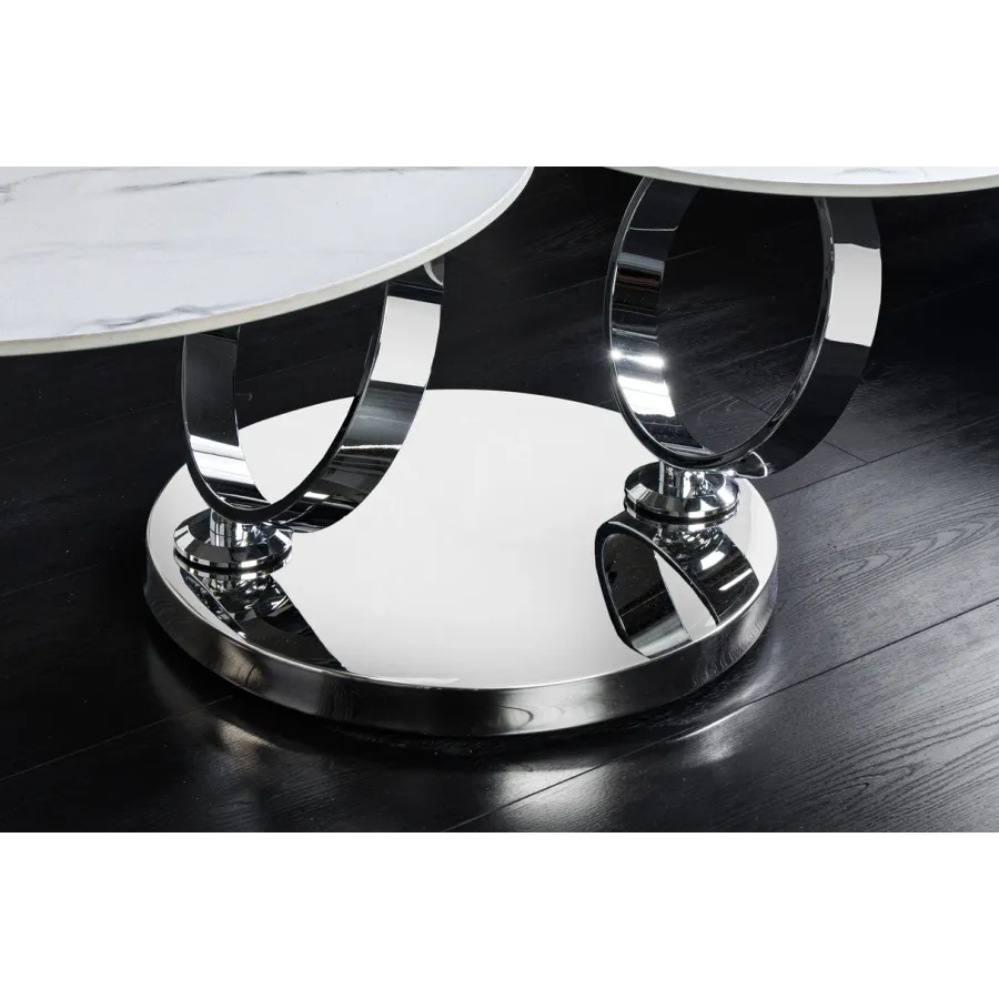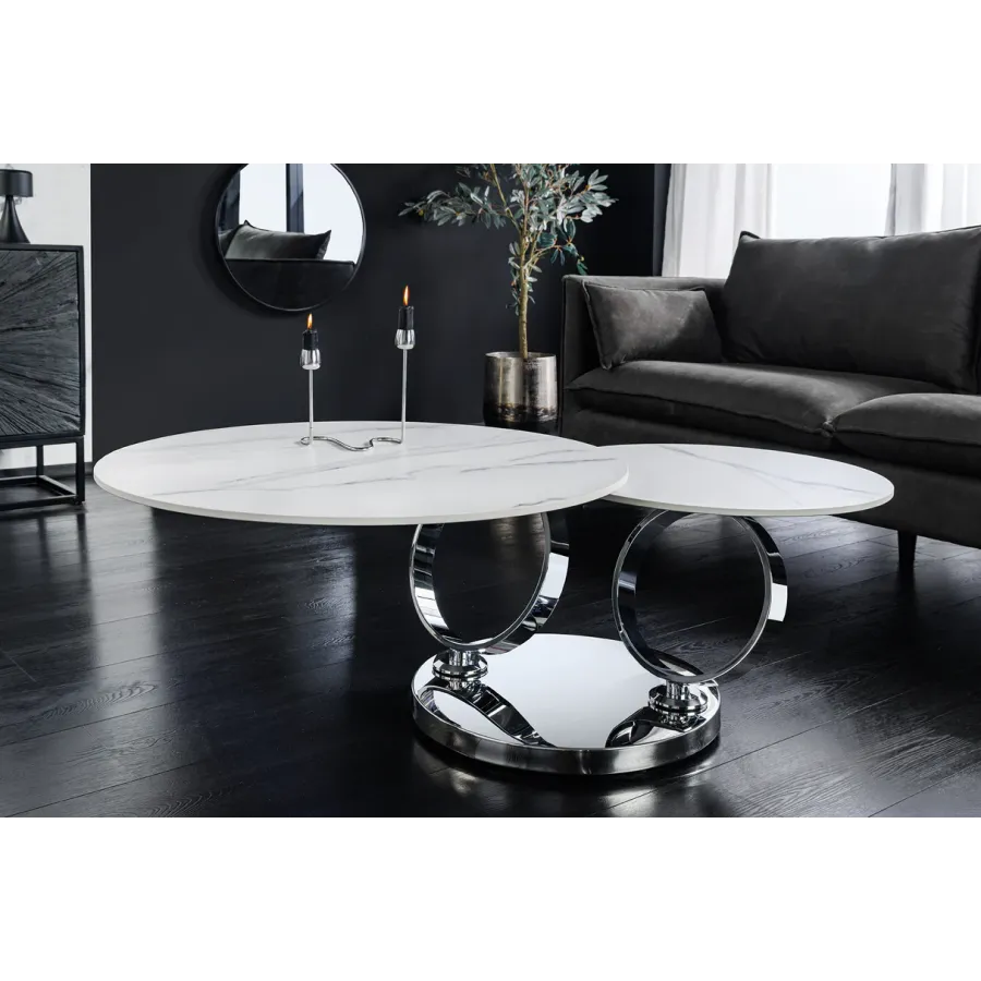 Invicta Stolik kawowy DANCING RINGS 80-135cm biały marmur chromowana rama / 46318