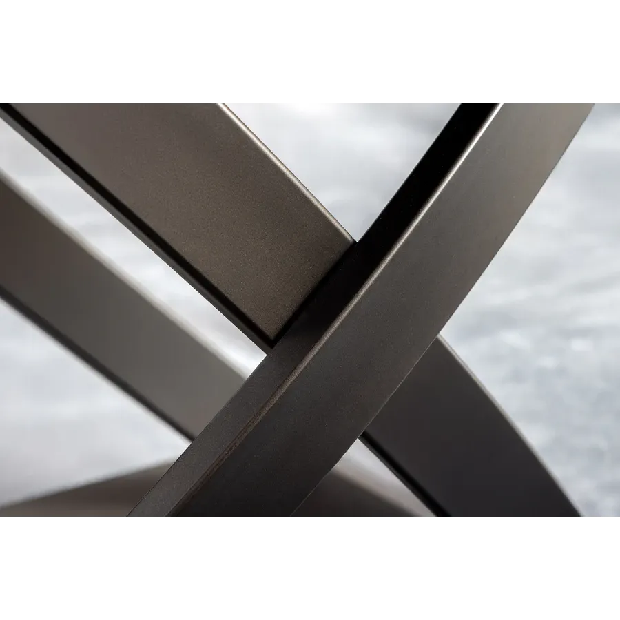 Oprócz wyrjątkowego blatu stół do jadalni imponuje również misternie zaprojektowaną podstawą wykonaną z metalu malowanego proszkowo. Masywna podstawa nadaje stabilności, a jednocześnie wygląda niemal filigranowo dzięki otwartej konstrukcji i skrzyżowanym elementom nóg. Nowoczesny industrialny design stołu do jadalni można połączyć w cudownie wszechstronny sposób z różnymi krzesłami, lampami i kredensami - po prostu go wypróbuj.
