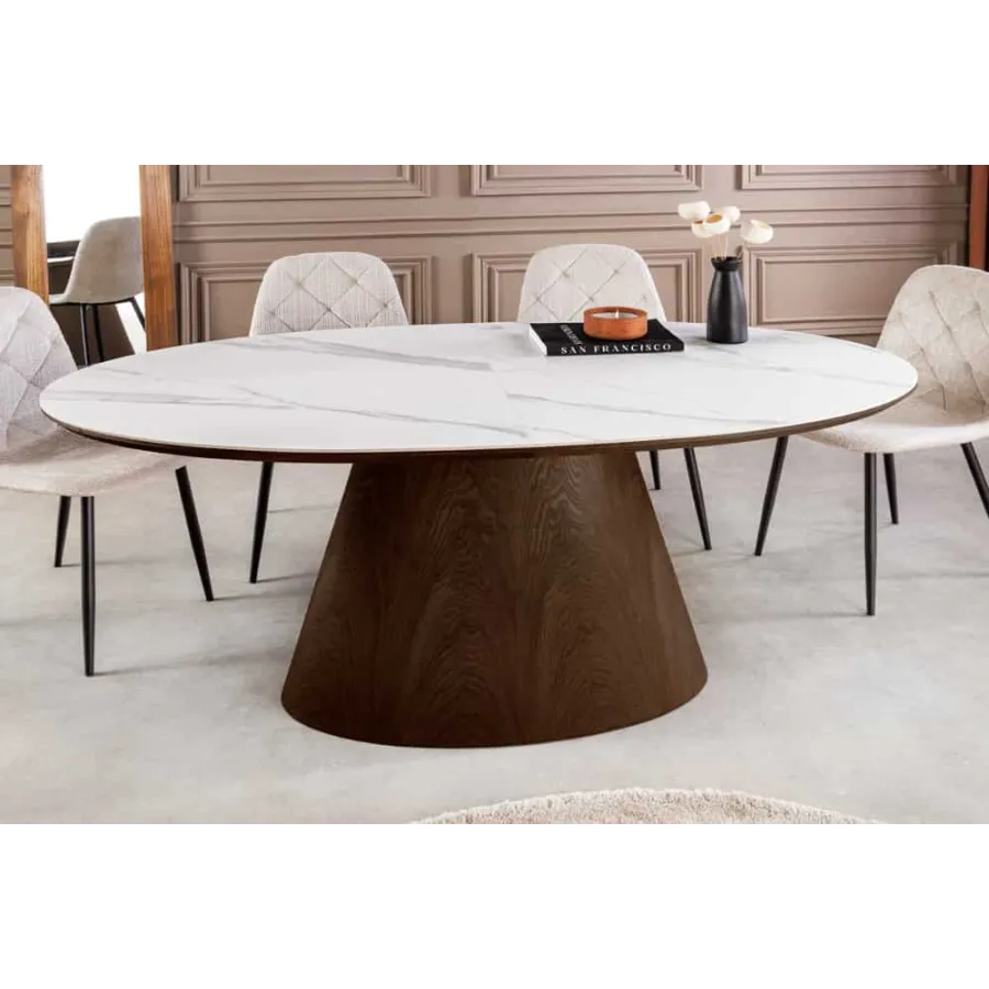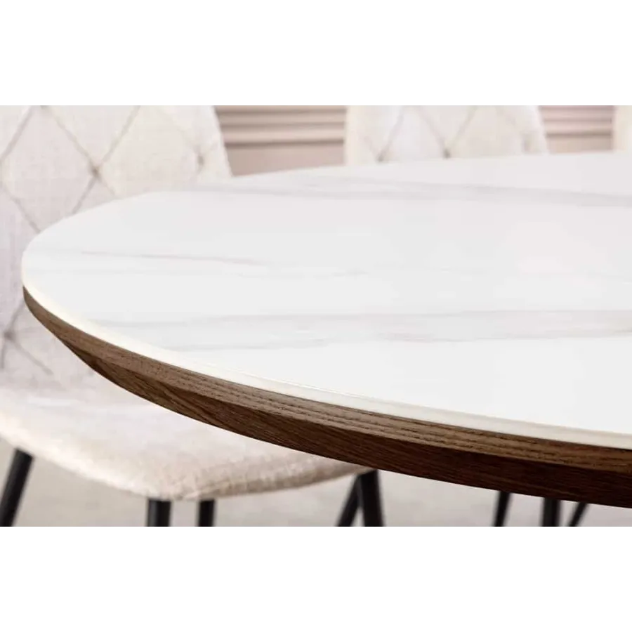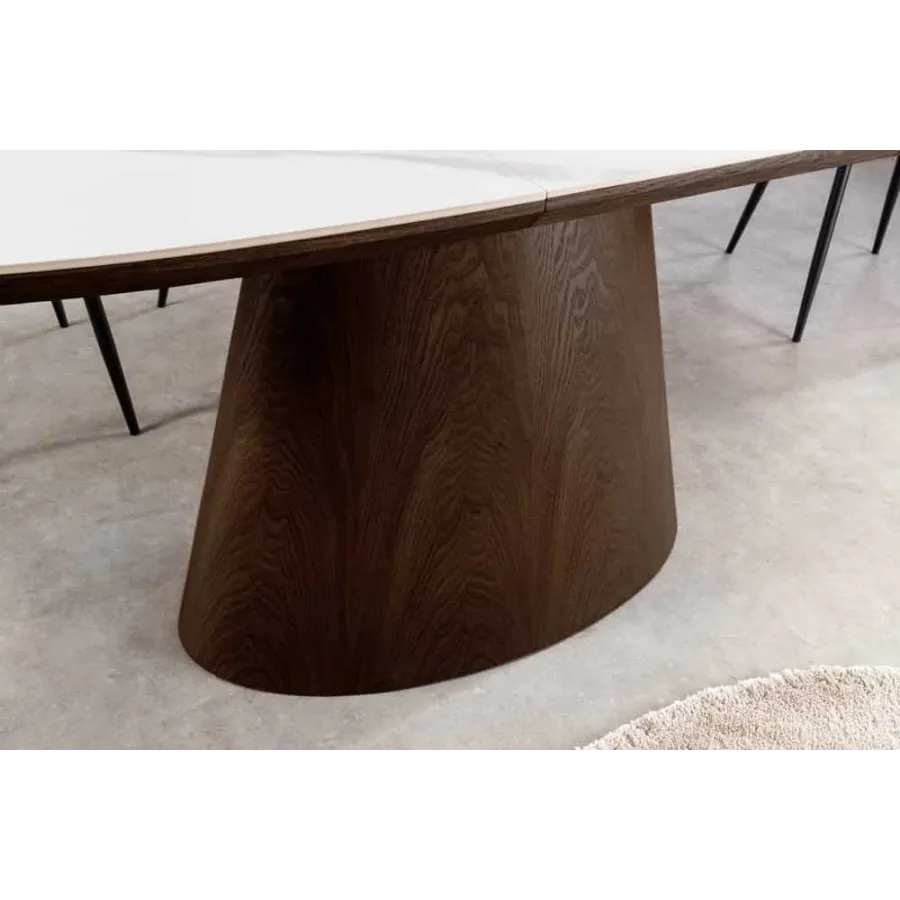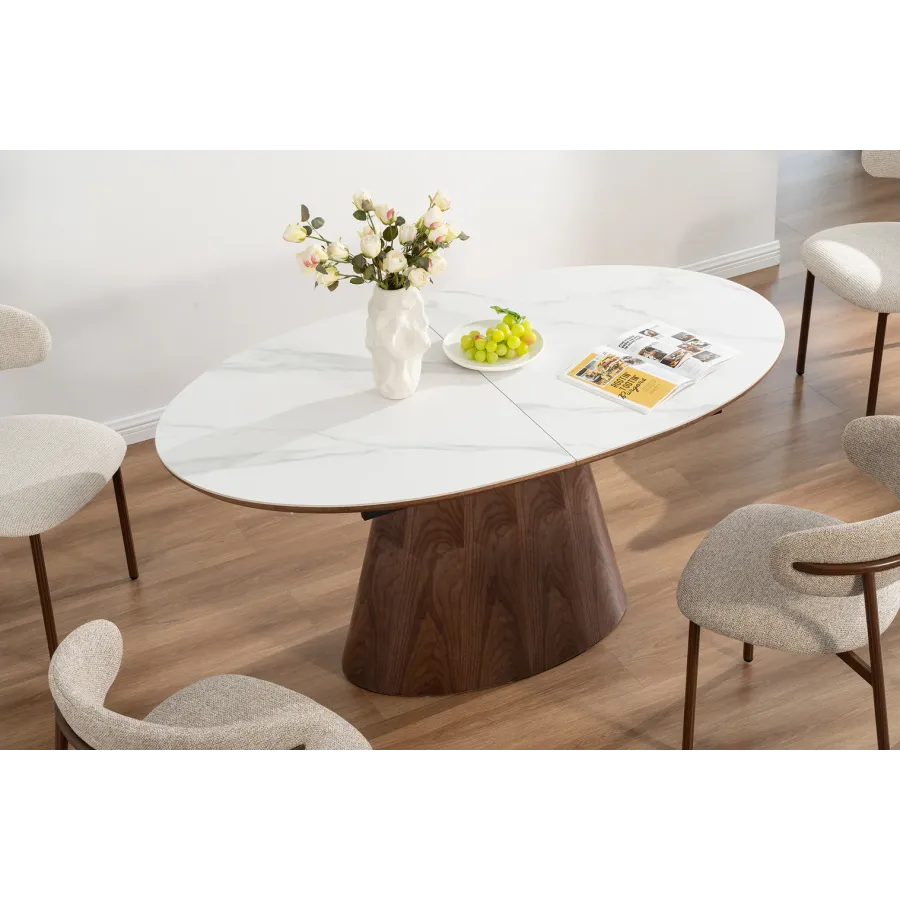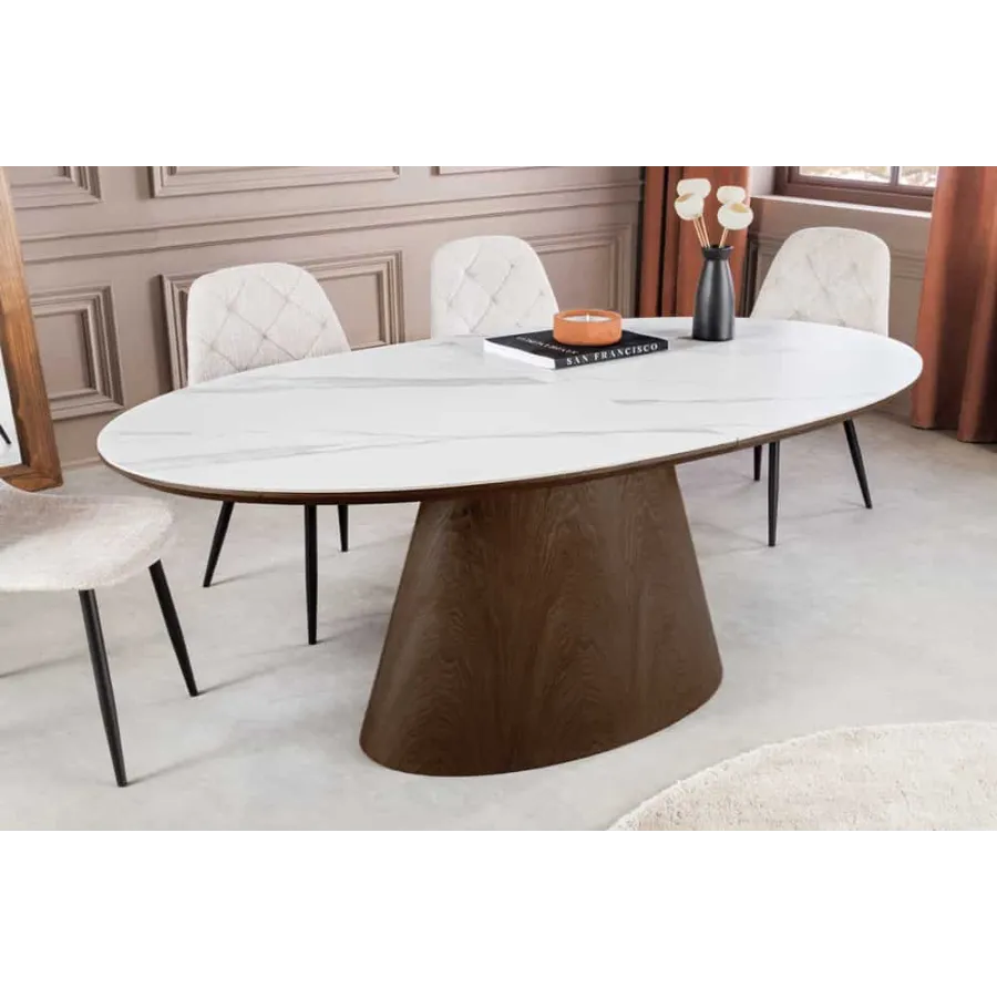 Wprowadź elegancję i nowoczesny styl do swojej jadalni dzięki UNIQUE – rozkładanemu stołowi, który łączy elegancki, biały blat o wyglądzie marmuru z bogatymi akcentami z orzechowego drewna. Stylowy, trwały i niezwykle praktyczny, idealnie sprawdzi się zarówno na co dzień, jak i podczas niezapomnianych kolacji.