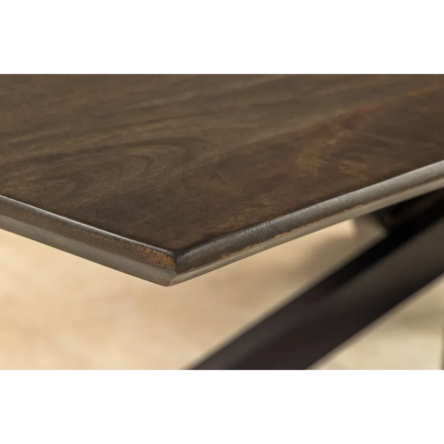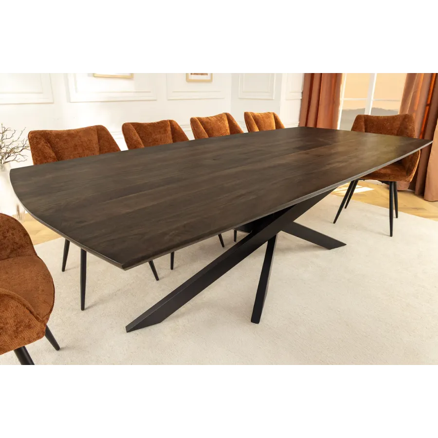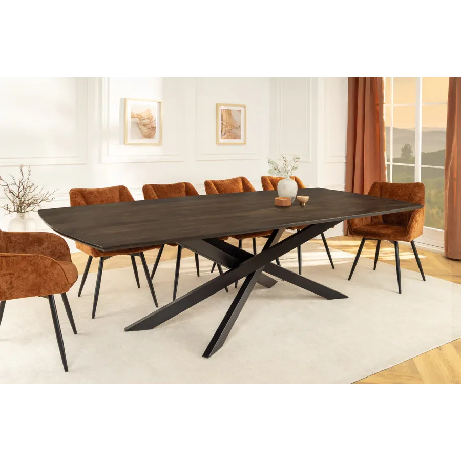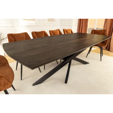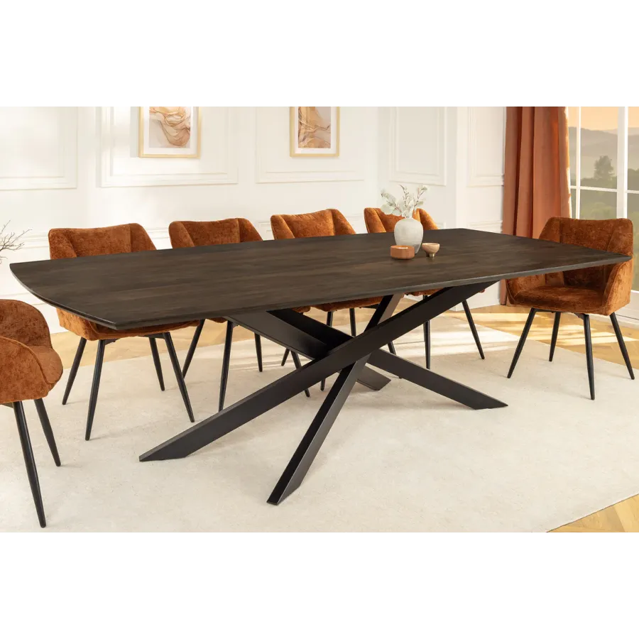Stół jadalny SIGNUM zachwyca eleganckim designem w kształcie łódki i wysoką jakością wykonania z litego drewna mango. Długość 220 cm zapewnia wystarczająco dużo miejsca na wieczorne spotkania w gronie rodziny i przyjaciół. Ciemnobrązowy kolor drewna podkreśla naturalne usłojenie i tworzy ciepłą, przytulną atmosferę w jadalni.