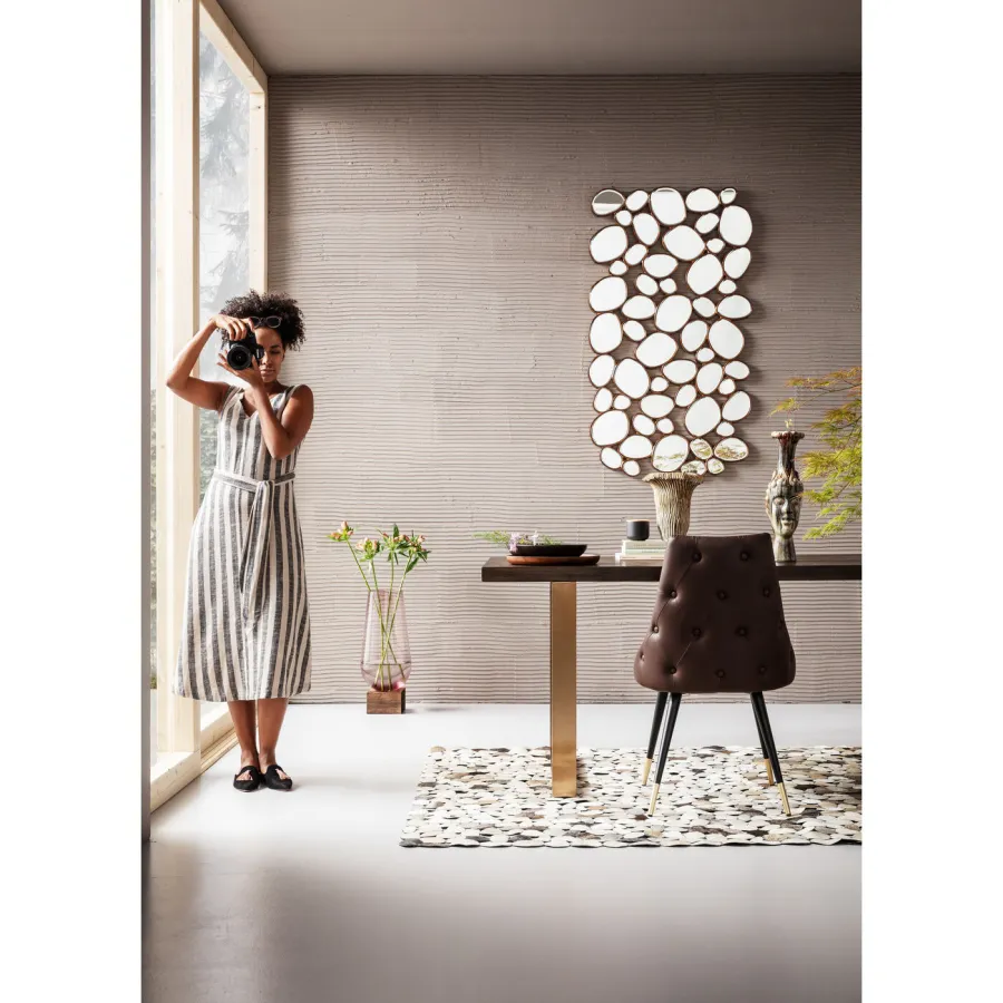 Klasyczne biurko, które sprawdzi się również we wnętrzu luksusowego jachtu żaglowego. Okucia prętów, graficzna mosiężna rama i ciemny fornir jesionowy stanowią fajne połączenie stylu globtrotera i modernizmu. Dostępne są także inne modele mebli z serii Osaka