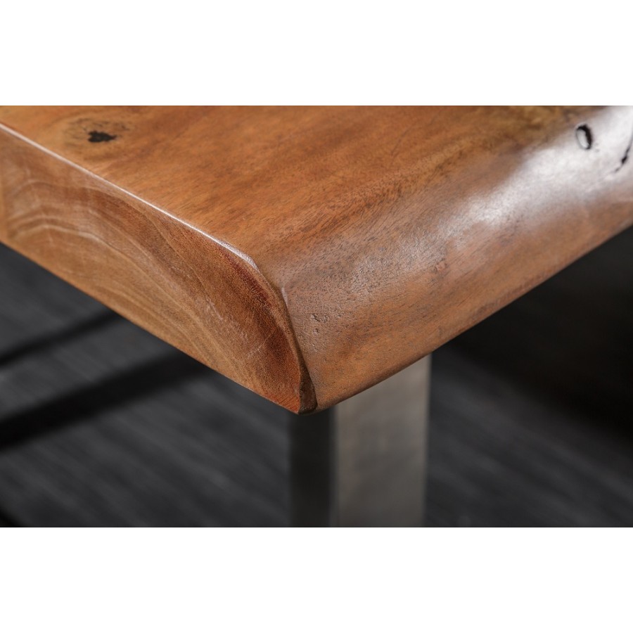 Odkryj nasz duży stół jadalny MAMMUT NATURE z naturalnym blatem! Jako specjalny akcent, krawędzie stołu zostały obrobione maszynowo, aby stworzyć oryginalny charakter i naturalne wrażenie kawałka gigantycznej akacji. To tak, jakby duże drzewo zostało przecięte na pół, aby stworzyć blat! Jest to możliwe dzięki specjalnie opracowanej maszynie, która tnie drewno, nadal w oryginalnym stanie, z nienaruszoną korą, do pożądanej grubości.