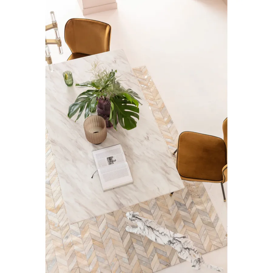 Dzięki podstawie stołu w kształcie prostopadłościanu i całości z beżowego, prawdziwego marmuru, ten stół do jadalni magnetycznie przyciąga uwagę wszystkich. Ten minimalistyczny designerski mebel marki KARE pasuje do wszystkich nowoczesnych stylów życia i wnosi dyskretny luksus do Twojego domu, poprawiając styl wnętrza na wiele lat. Uzupełnij wyposażenie swojej jadalni pasującymi krzesłami. Krzesła do jadalni obite tkaniną wyglądają szczególnie atrakcyjnie w połączeniu z tym marmurowym stołem