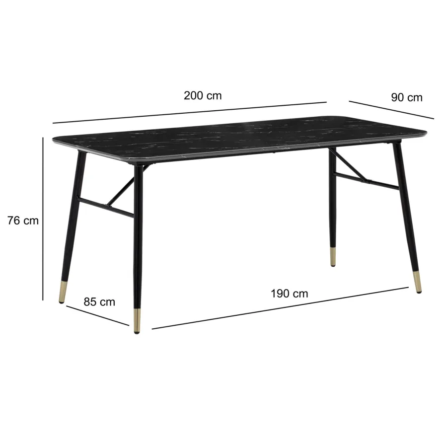 WOHNLING Stół do jadalni PARIS optyka czarnego marmuru 200 x 90 x 76cm / WL6.964