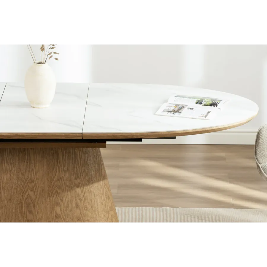 Invicta Stół UNIQUE owalny rozkładany optyka białego marmuru 160 - 200cm / 47658