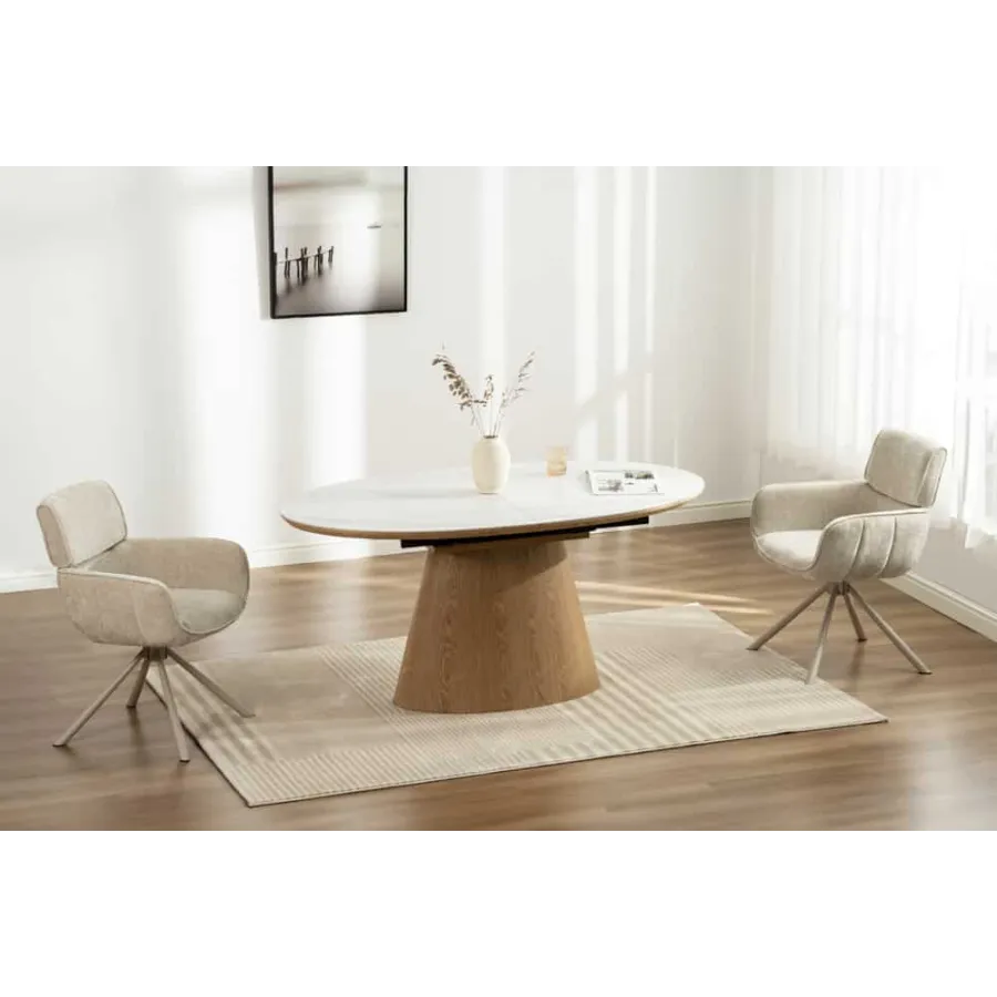 Niezależnie od tego, czy chodzi o codzienne życie rodzinne, czy o odwiedziny u znajomych – stół można rozłożyć ze 160 do 200 cm w zaledwie kilku prostych krokach. Zintegrowany blat rozkładany pozostaje dyskretnie ukryty i harmonijnie komponuje się z całością. Każdy element jest naprawdę wyjątkowy dzięki naturalnemu usłojeniu – trwały, wytrzymały i po prostu ponadczasowo piękny. Zdefiniuj na nowo swoją jadalnię i ciesz się tym praktycznym, owalnym stołem!
