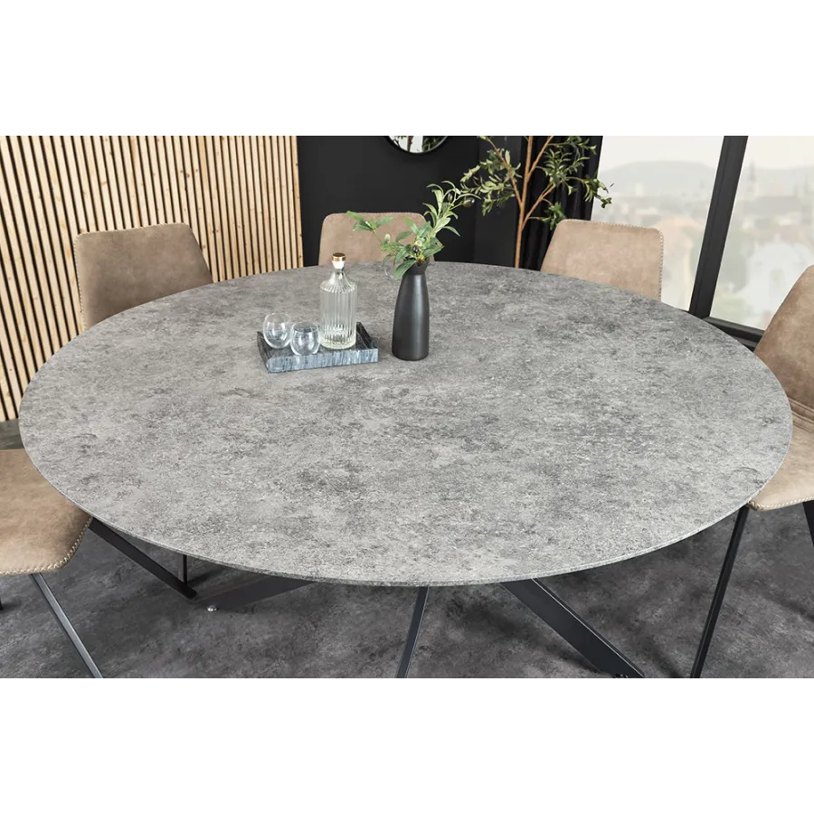 Wprowadź elegancki styl do swojej jadalni z HELIX – okrągłym stołem, który łączy szary blat o wyglądzie kamienia z wyrazistą, czarną metalową ramą. Wytrzymały, praktyczny i niezwykle nowoczesny, idealnie sprawdzi się zarówno przy niezobowiązującej kawie, jak i podczas ożywionych kolacji.