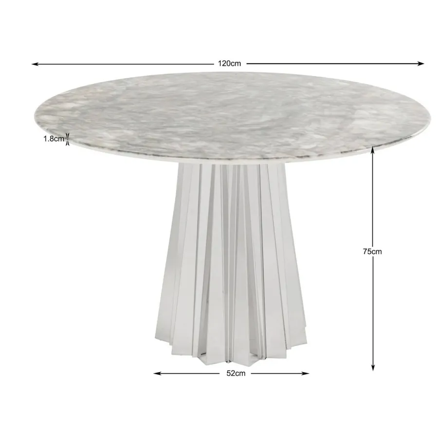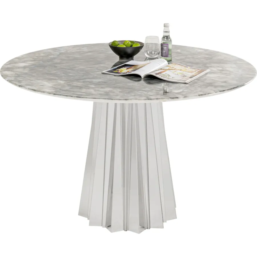 Rama: stal nierdzewna polerowana, Blat: Płyta pilśniowa średniej gęstości (MDF) pokryta żywicą melaminową, marmur mineralny, grubość panelu 12 mm