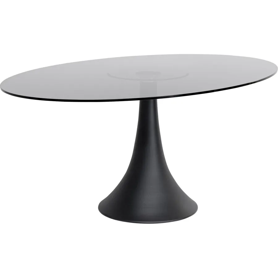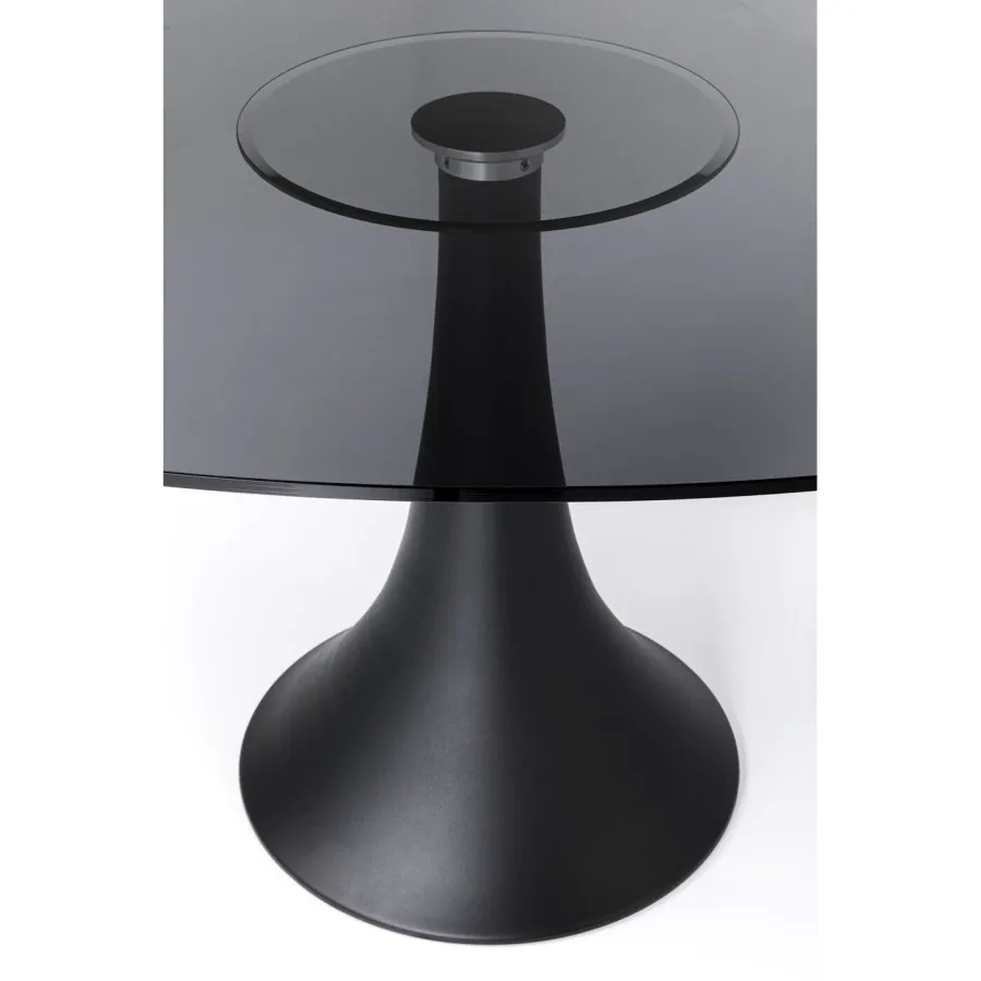 Czy lubisz ponadczasowe meble, które możesz odnawiać i używać wielokrotnie? W takim razie ten nowoczesny stół do jadalni będzie Ci dobrze służył. Dzięki swojej konstrukcji można go łączyć z różnymi krzesłami w różnych stylach, zarówno wykonanymi ze skóry, drewna, jak i w formie krzesła tapicerowanego. Owalny szklany stół jest również nieskomplikowany, jeśli chodzi o obrusy, zastawę stołową i szklanki. Świetnie prezentuje się zarówno bogato i odświętnie udekorowana, jak i prosta dekoracja stołu. W przypadku szklanych stołów do jadalni nasi eksperci od mebli polecają podkładki lub obrusy z dyskretnymi wzorami lub teksturowane tekstylia, takie jak len. Ceramiczne podkładki również umiejętnie kontrastują z gładką powierzchnią stołu