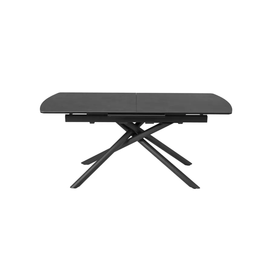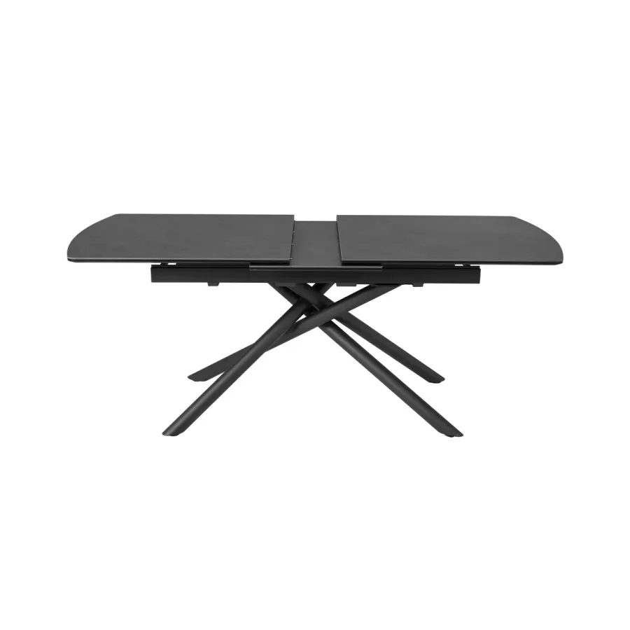 Designerski stół do jadalni MIKADO wniesie ciepłą i przyjazną atmosferę do Twojego domu dzięki eleganckiemu ceramicznemu blatowi w stylowym graficie. Elegancka powierzchnia emanuje wysoką jakością i doskonale komponuje się z wyrazistą ramą w kształcie gwiazdy w matowej czerni. Stół, który nie tylko zachwyca wizualnie, ale także zaprasza na przytulne spotkanie towarzyskie.