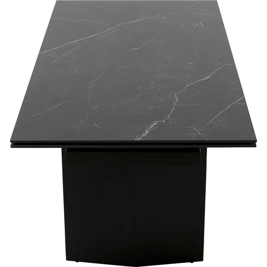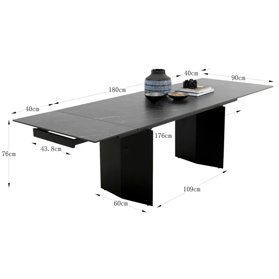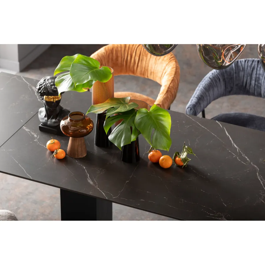 Wygląda dobrze i jest również funkcjonalny: ten rozkładany stół wyróżnia się pod obydwoma względami. Gdy odwiedzi nas o kilka osób więcej niż planowano, stół można łatwo rozłożyć do 260 cm, dzięki czemu 12 osób będzie mogło cieszyć się legendarną kolacją. Dzięki czarnemu wykończeniu, eleganckim bokom i ceramicznemu blatowi ten stół do jadalni z jednej strony tworzy piękny kontrast kolorystyczny w pomieszczeniu. Jednocześnie absolutnie nie można się pomylić z tym stołem i jego nowoczesną i klasyczną stylistyką. Ten prostokątny stół idealnie sprawdzi się w jadalni, salonie, a nawet na spotkaniu w biurze