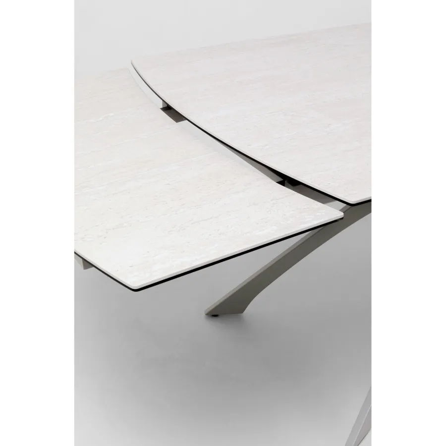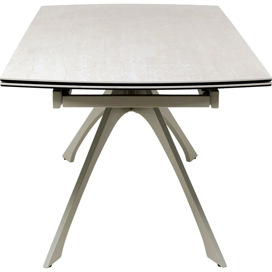 Elegancja spotyka się z funkcjonalnością - ten stylowy rozkładany stół wnosi powiew świeżego powietrza do nowoczesnych przestrzeni mieszkalnych. Drobnoziarnista powierzchnia o wyrafinowanym wyglądzie kamienia i delikatne naturalne odcienie tworzą spokojną, harmonijną atmosferę, a delikatna rama w kolorze szarości stanowi wyraz designu. Dzięki sprytnej funkcji wysuwania mebel można błyskawicznie przekształcić z codziennego towarzysza w centralny element dużych spotkań - idealny na przyjęcia lub długie wieczory z grami. Idealnie komponuje się z minimalistycznymi krzesłami, wazonami w naturalnych kolorach lub akcentami ze szkła i metalu. Stół, który to potwierdza: funkcjonalność i estetyka nie muszą być kompromisem