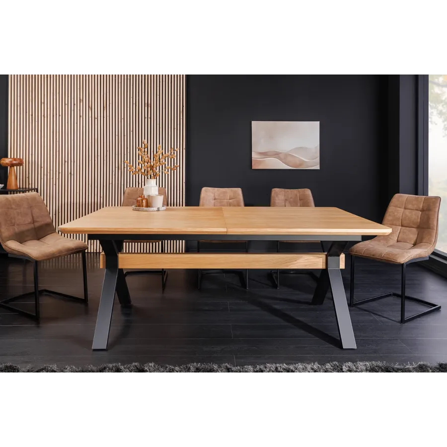Spotkaj się w wielkim gronie z GIANT – gdzie każdy posiłek zamienia się w arcydzieło. Ten rozkładany stół jadalny łączy w sobie naturalne ciepło orzecha włoskiego z elegancką, czarną metalową ramą, gotową na wszystko, od przytulnych śniadań po świąteczne uczty.
