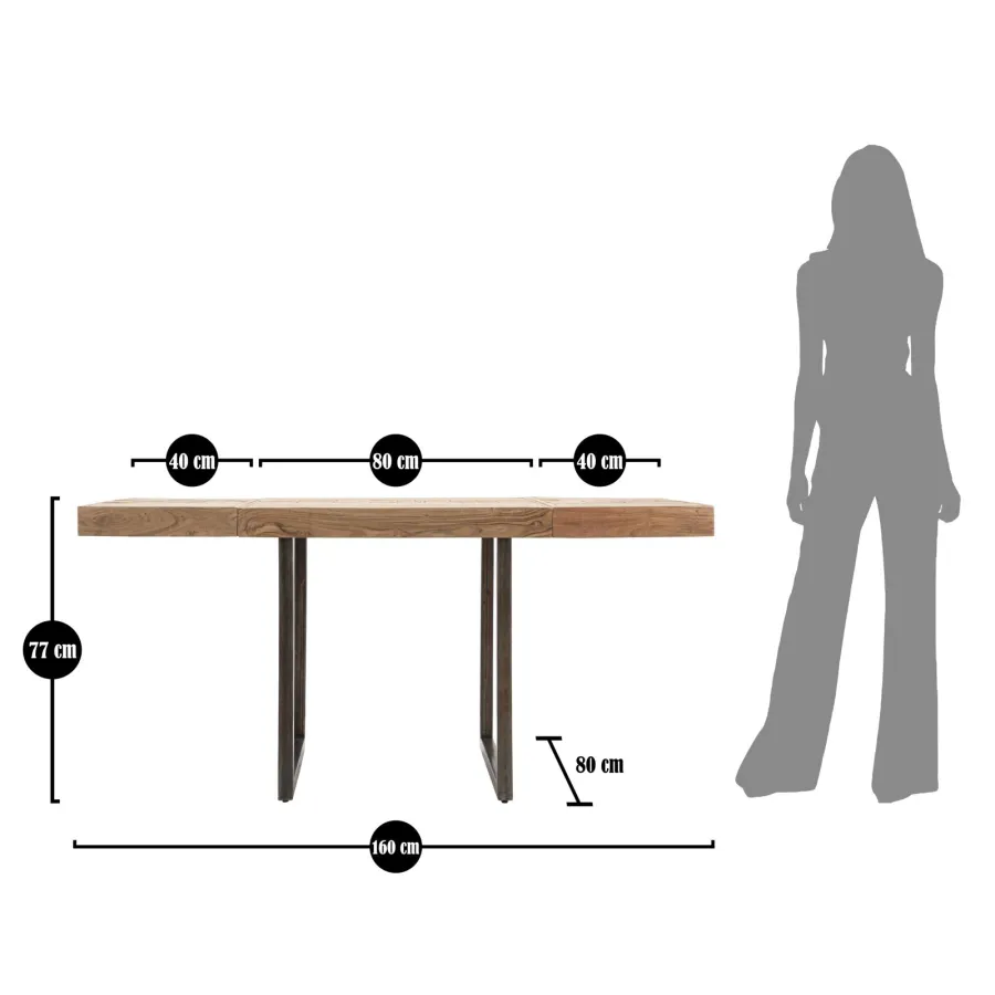 Stół jadalniany MUMBAI QUAD. ALL. 80x80x77 cm - Dł. T. 160 (AKACJA NILOTICA)
