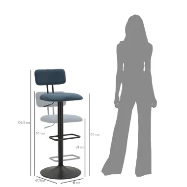 Hoker Barowy LIGHT NAVY 41x47,5x85-106,5 cm (siedzenie 61-83 cm) ZESTAW 2 SZT