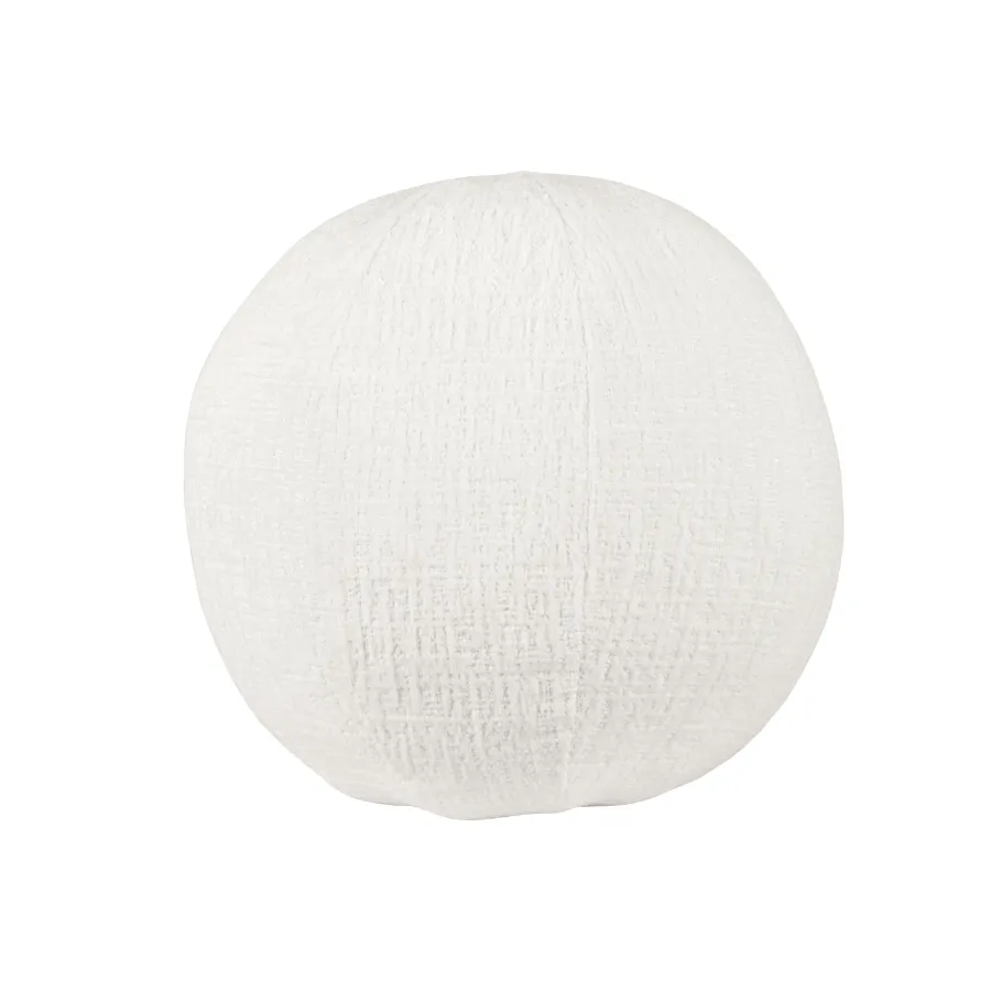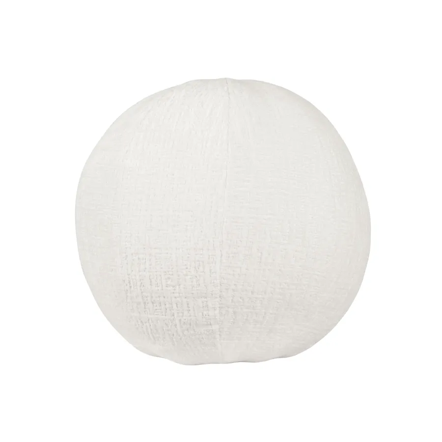 Elegancka poduszka wykonana z miękkiego, białego weluru w formie stylowej kuli. Jej nowoczesny, minimalistyczny design doskonale sprawdzi się jako oryginalna ozdoba sofy, fotela lub łóżka. Przyjemna w dotyku tkanina dodaje wnętrzu przytulności i klasy.