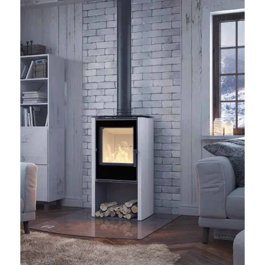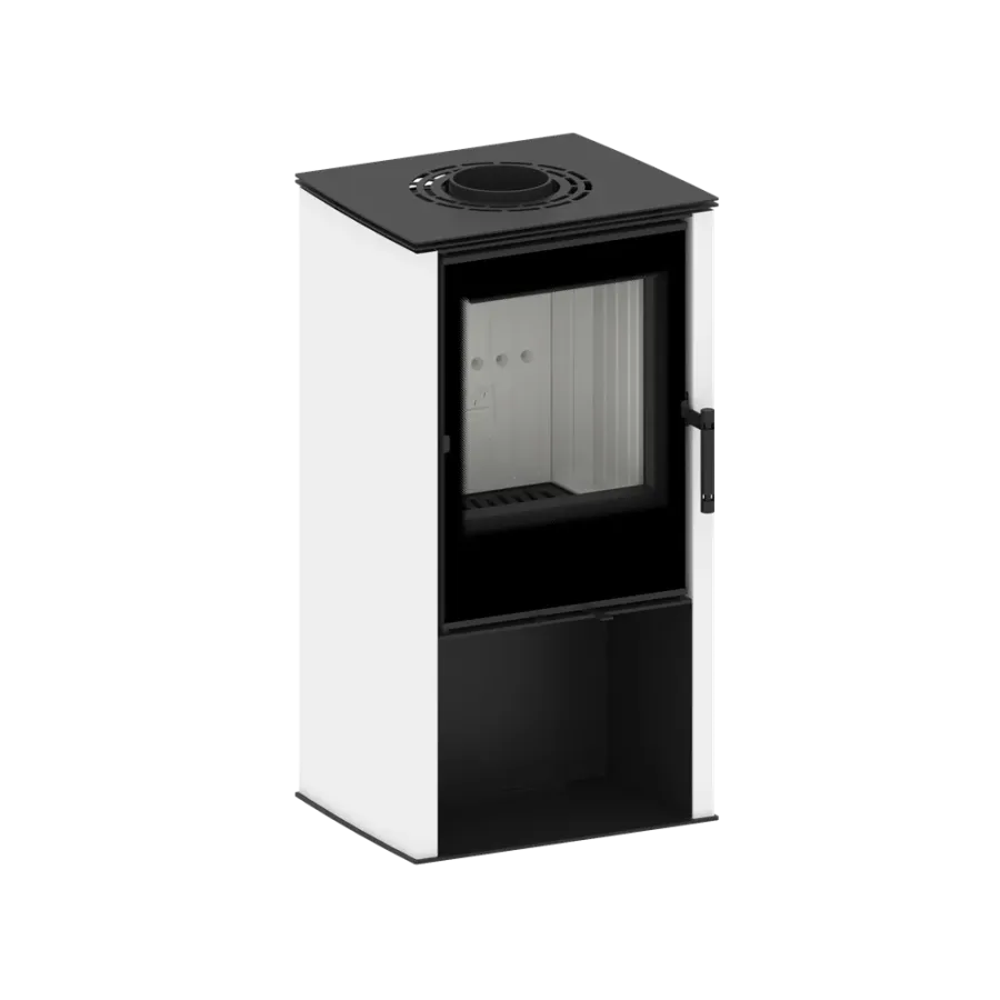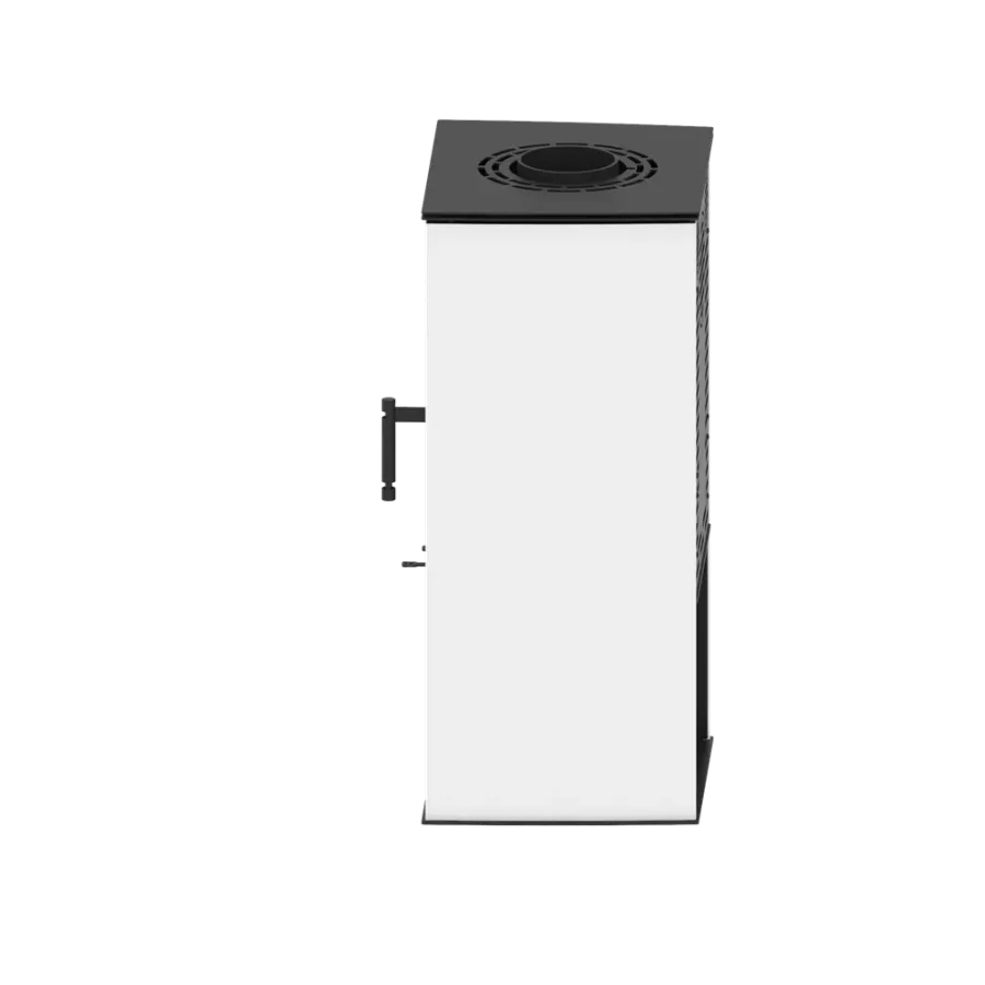 LUPO S z białymi bokami to wolnostojący piec na drewno, który łączy niewielkie wymiary, wysoką efektywność grzewczą oraz nowoczesny design. Idealnie sprawdzi się w mniejszych wnętrzach, gdzie liczy się każdy centymetr przestrzeni, ale nie chcemy rezygnować z wyjątkowego wyglądu i komfortu użytkowania.