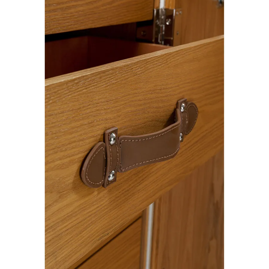 Korpus: Płyta pilśniowa średniej gęstości (MDF) bejcowana, sklejka jesionowa fornirowana, Rolka: stal ocynkowana, Uchwyty: Tekstylny pokryty poliuretanem, Panele: Tekstylny pokryty poliuretanem, Półka