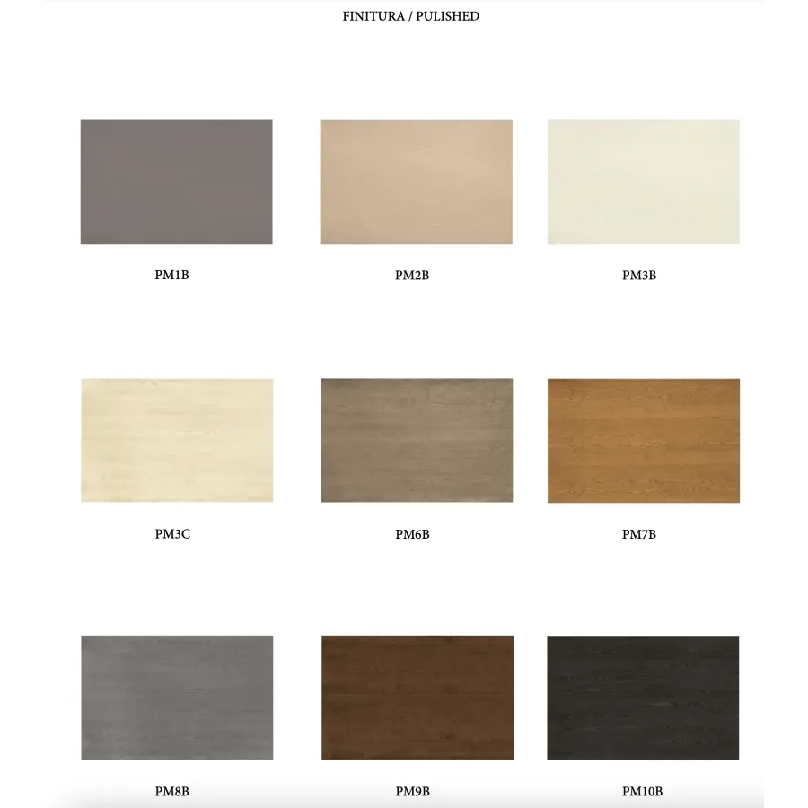Płyta wiórowa fornirowana jesionem z listwami (strona zewnętrzna i wewnętrzna) i anegrè (na tyłach) o różnych grubościach