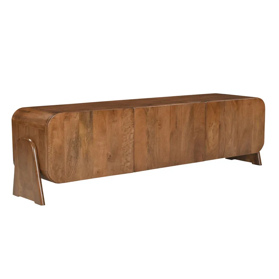 Szafka TV BRASIL wniesie do Twojego domu powiew południowoamerykańskiej naturalności. Wykonany z litego, lakierowanego drewna mango, mebel zachwyca ciepłym, brązowym kolorem i wyrazistym usłojeniem. Zaokrąglony kształt tworzy miękką sylwetkę i wprowadza spokój i harmonię do wnętrza.