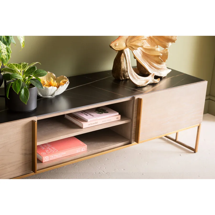 Korpus: Płyta pilśniowa średniej gęstości (MDF) Naturalna/nieobrobiona, Sklejka dębowa lakierowana, Pokrywa: Kamionka ceramiczna, Stopa/Podstawa: Stal nierdzewna pokryta mosiądzem, Uchwyt: Stal nierdzewna pokryta mosiądzem