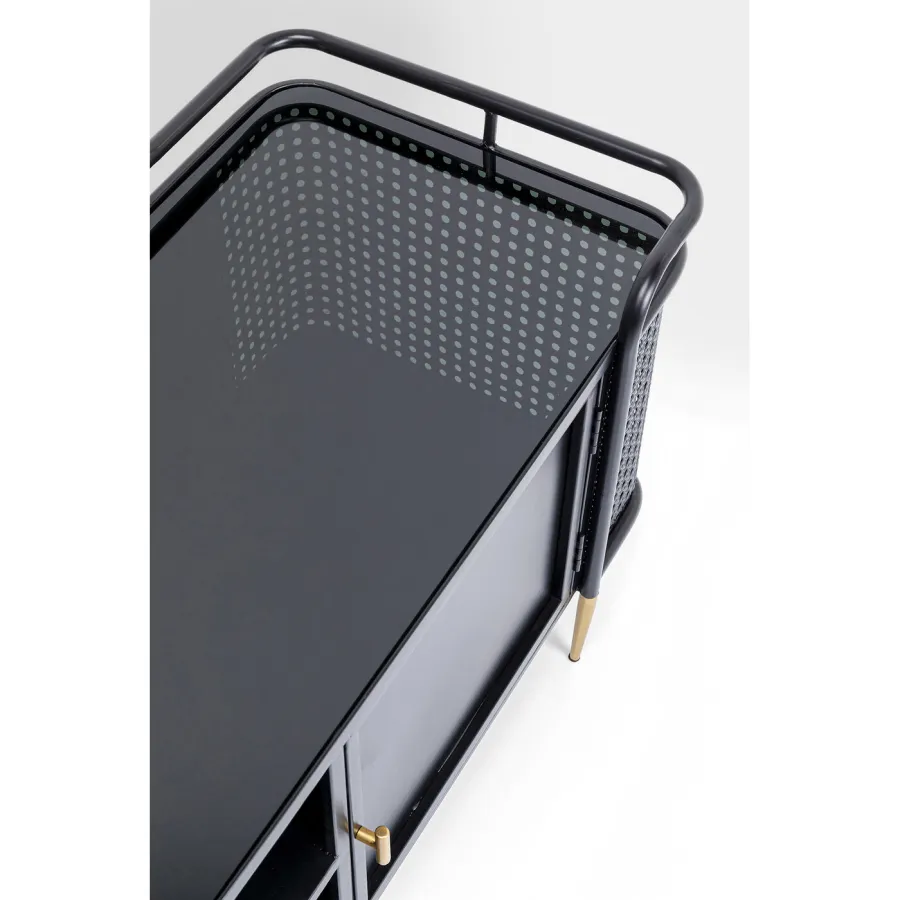 Kolekcja mebli Fence poszerza świat stylów mebli stalowych. To nie tradycyjnie surowy, industrialny wygląd, ale nowoczesna elegancja wyróżnia tę linię mebli. Elementu zaskoczenia dostarczają trzy składniki, których nie widzieliśmy wcześniej w meblach warsztatowych. Na frontach wkracza wiedeńska siatka. W Fence gładkie powierzchnie z lakierowanej stali i szkła przeplatają się ze strukturalnymi, przepuszczalnymi przejściami o wyglądzie wikliny, które również są wykonane ze stali. Design kolekcji Fence jest również niepowtarzalny dzięki zamaszystym liniom nóg i ram, które kończą się rodzajem poręczy, przypominającej poręcz wokół pokładu statku. I wreszcie uchwyty i nogi z mosiężnym wykończeniem zapewniają eleganckie chwile w stylu retro