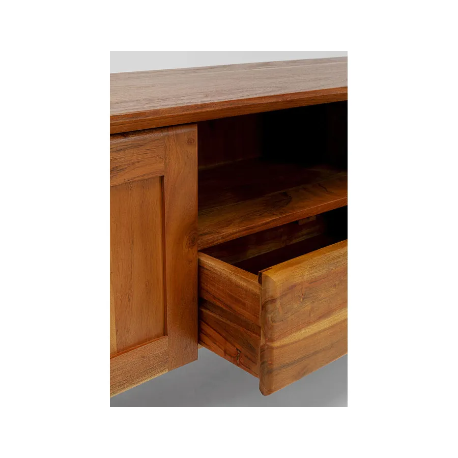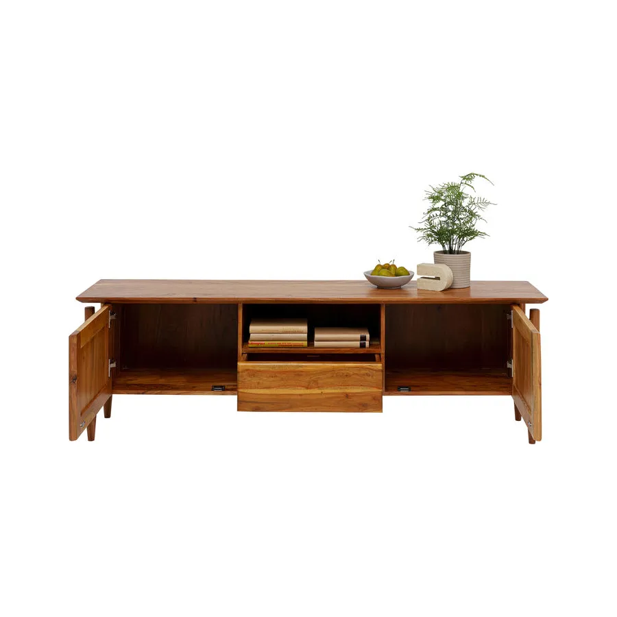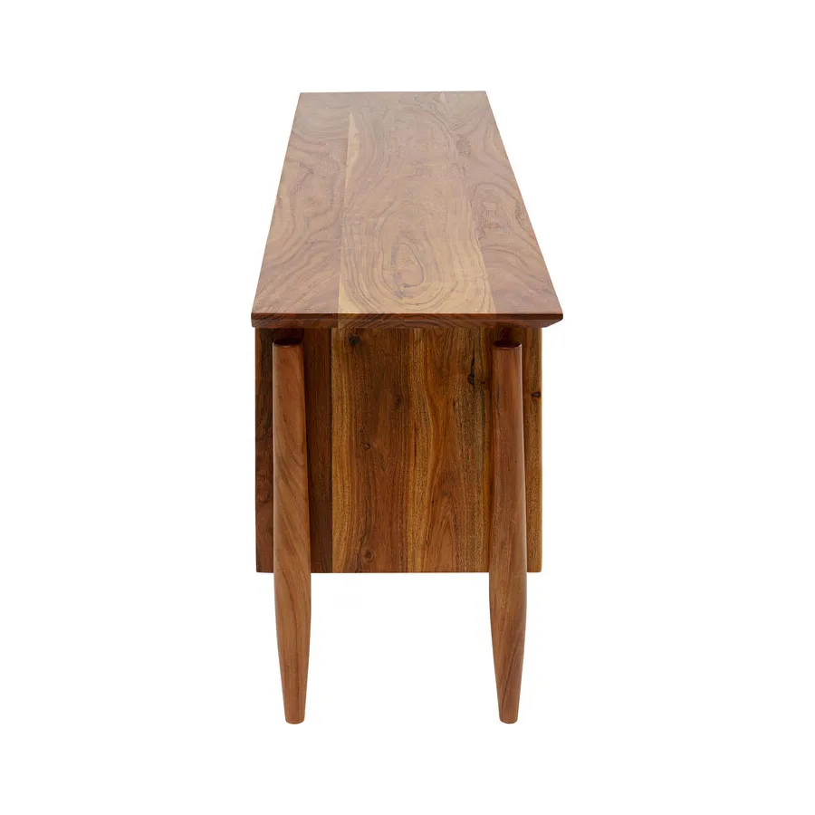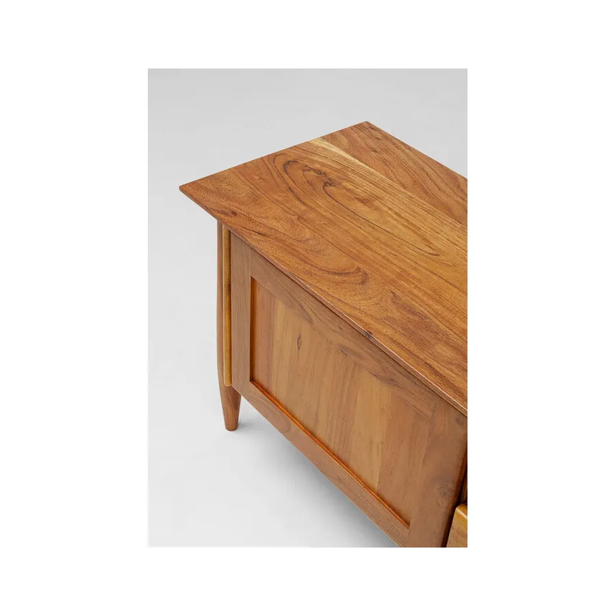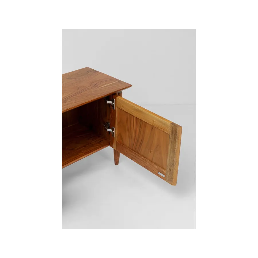 Oświadczenie wykonane z litego drewna akacjowego – ta seria Denver łączy w sobie doskonałe rzemiosło z uderzającym designem. Niezwykły kształt nóg nadaje każdemu egzemplarzowi rzeźbiarskiej elegancji, a charakterystyczne usłojenie drewna wnosi do wnętrza ciepło i naturalność. Cicho domykające się drzwi skrywają dużą przestrzeń do przechowywania - idealną na naczynia w jadalni, dokumenty w biurze lub stylowe akcesoria domowe. Harmonijnie wtapia się w nowoczesne, skandynawskie lub industrialne koncepcje mieszkalne, zarówno jako solista, jak i w zespole z innymi odcieniami drewna