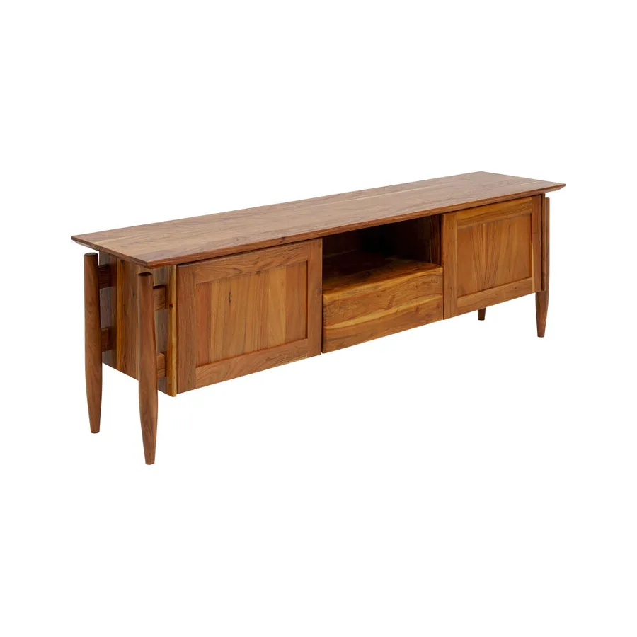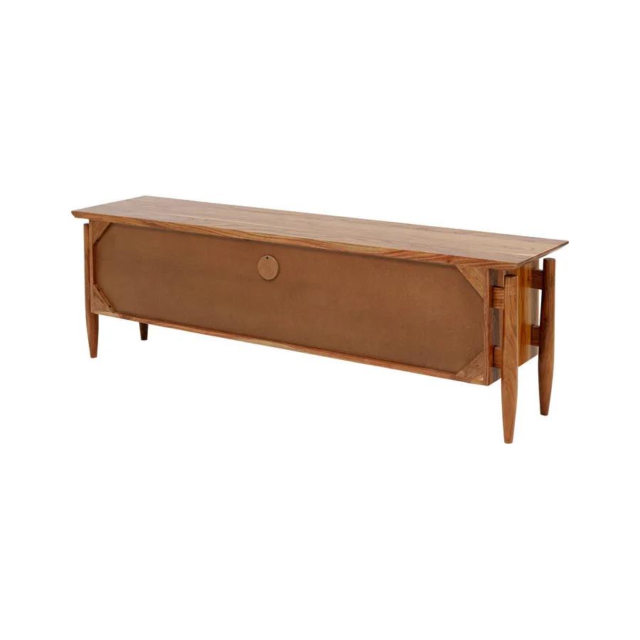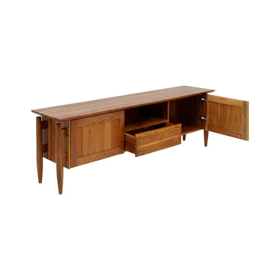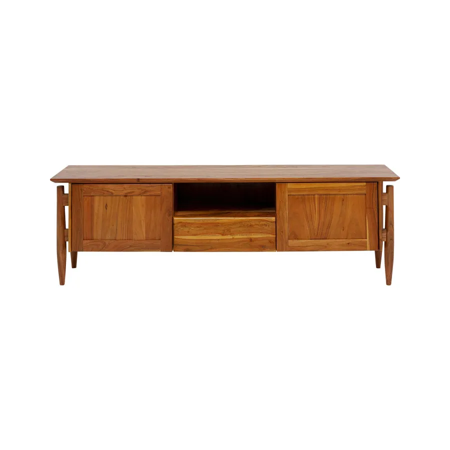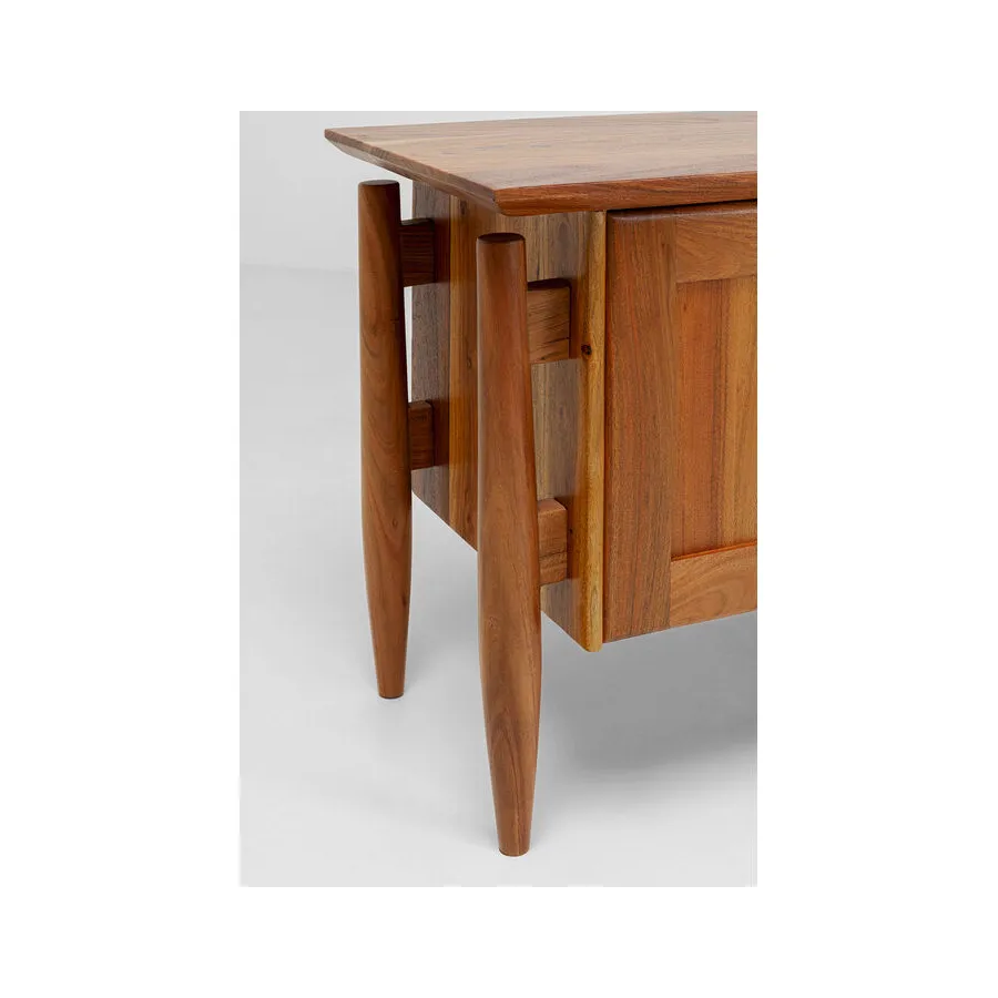 Oświadczenie wykonane z litego drewna akacjowego – ta seria Denver łączy w sobie doskonałe rzemiosło z uderzającym designem. Niezwykły kształt nóg nadaje każdemu egzemplarzowi rzeźbiarskiej elegancji, a charakterystyczne usłojenie drewna wnosi do wnętrza ciepło i naturalność. Cicho domykające się drzwi skrywają dużą przestrzeń do przechowywania - idealną na naczynia w jadalni, dokumenty w biurze lub stylowe akcesoria domowe. Harmonijnie wtapia się w nowoczesne, skandynawskie lub industrialne koncepcje mieszkalne, zarówno jako solista, jak i w zespole z innymi odcieniami drewna