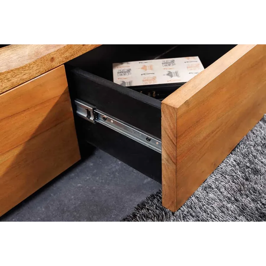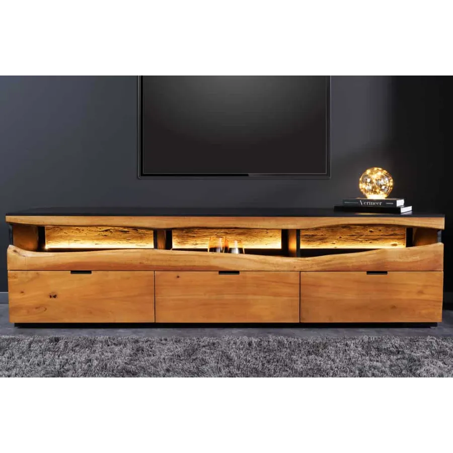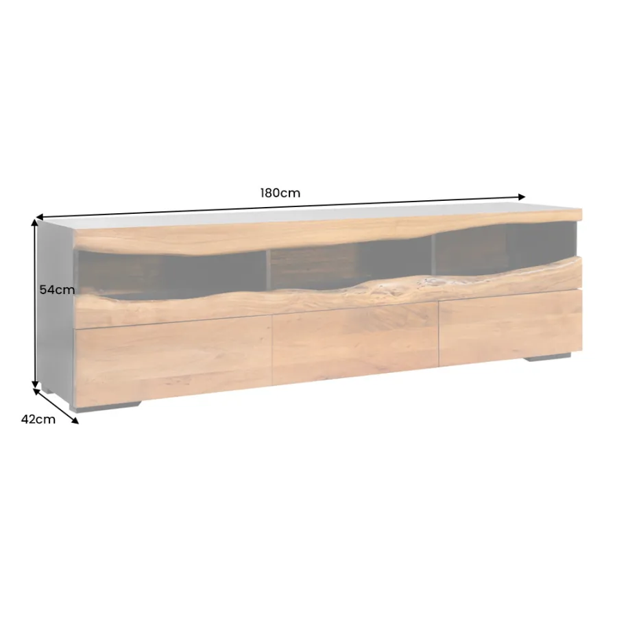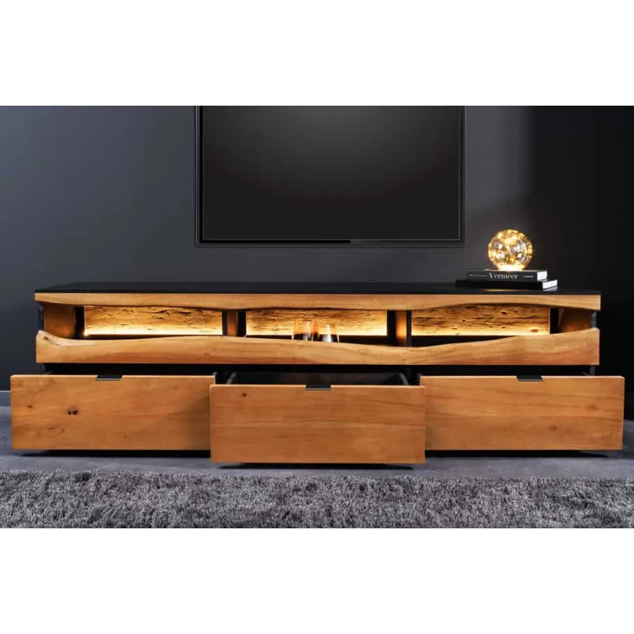 Odmień swój salon dzięki szafce pod telewizor GRAND ACACIA – łączącej naturalny urok z nowoczesną elegancją. Dzięki eleganckim czarnym nóżkom, wbudowanemu oświetleniu LED oraz pojemnym szufladom i półkom, szafka ta utrzyma porządek w Twoich gadżetach, a jednocześnie nada Twojej przestrzeni niepowtarzalny, stylowy charakter.