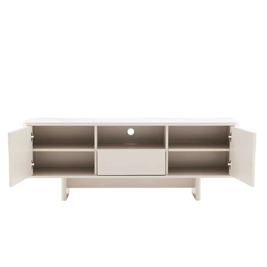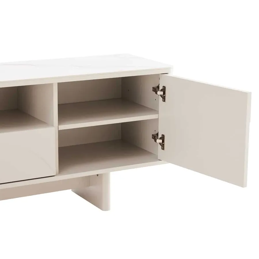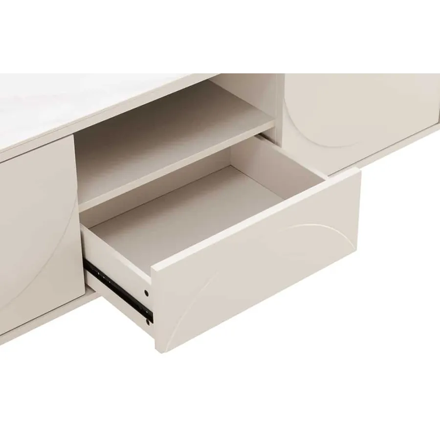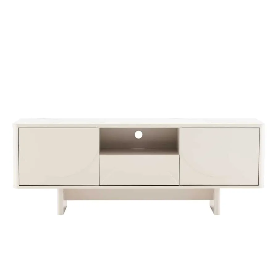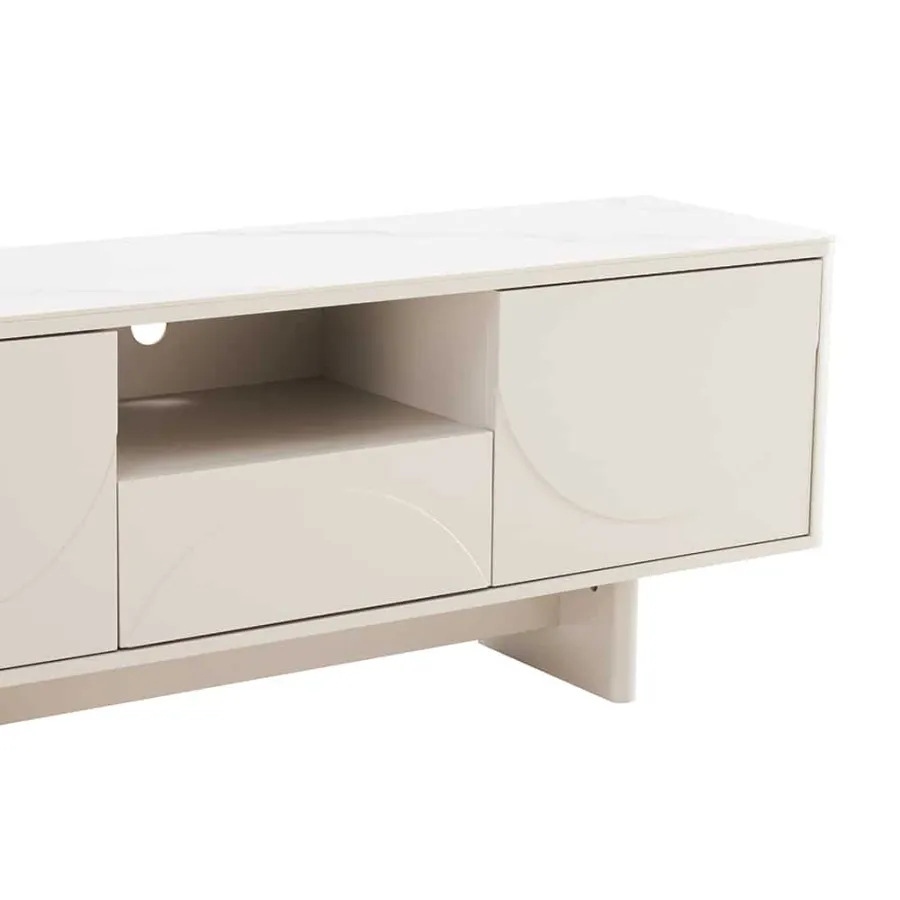 Invicta Komoda RTV SAVOY 3D MDF biały ceramiczny blat 150 x 57 x 40cm / 47798
