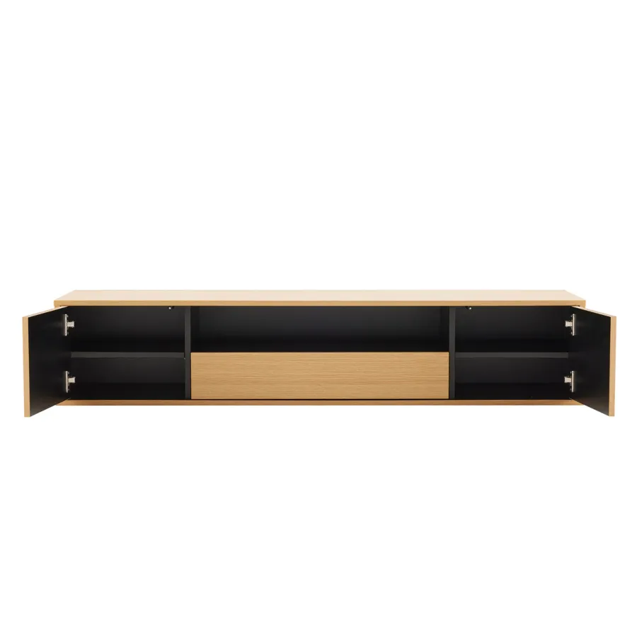 Szafka pod telewizor LOFT łączy nowoczesny skandynawski design z praktyczną trwałością, tworząc elegancki i stylowy element centralny każdego salonu. Dzięki solidnej konstrukcji i naturalnemu czarnemu wykończeniu, LOFT oferuje uporządkowane miejsce do przechowywania, dzięki któremu Twój salon będzie wyglądał schludnie i elegancko.