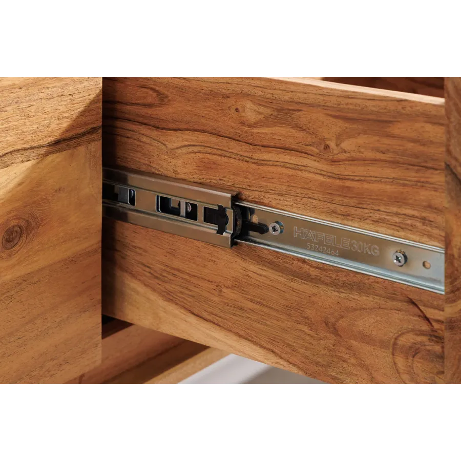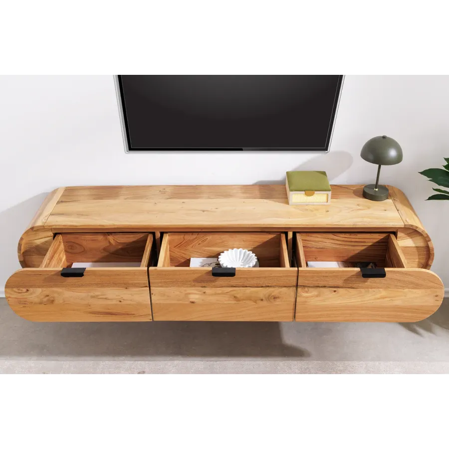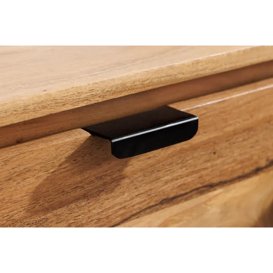 Szafka RTV ORGANIC łączy rustykalny urok akacji z nowoczesnym stylem, tworząc elegancki i funkcjonalny element centralny każdego wnętrza. Dzięki frontom imitującym naturalny kamień, czarnym metalowym uchwytom i gładkiemu lakierowanemu wykończeniu, ORGANIC utrzyma Twój salon w porządku, dodając mu jednocześnie nuty współczesnej elegancji.