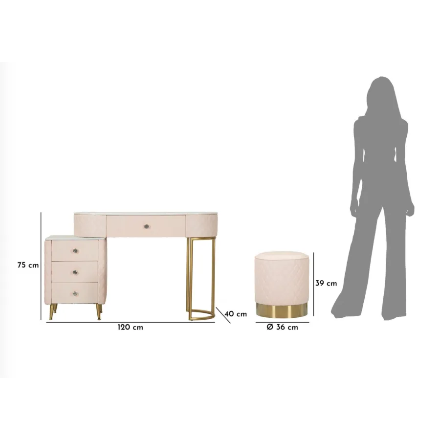Włoska Toaletka SHARON ROSA z Pufą 120 x 75x 40cm / 142835000R