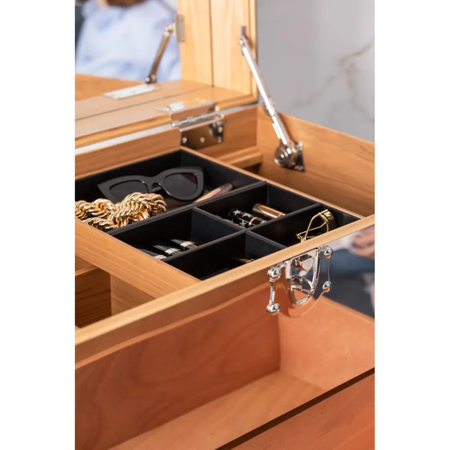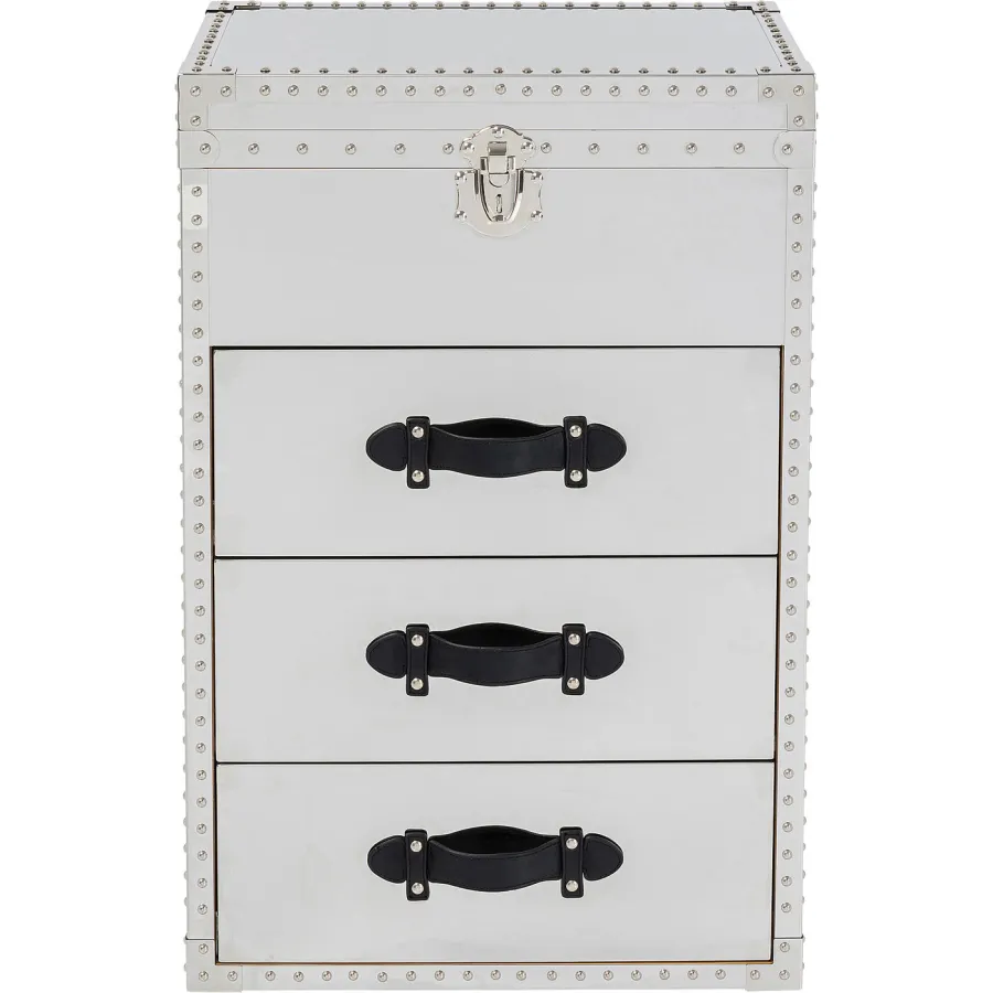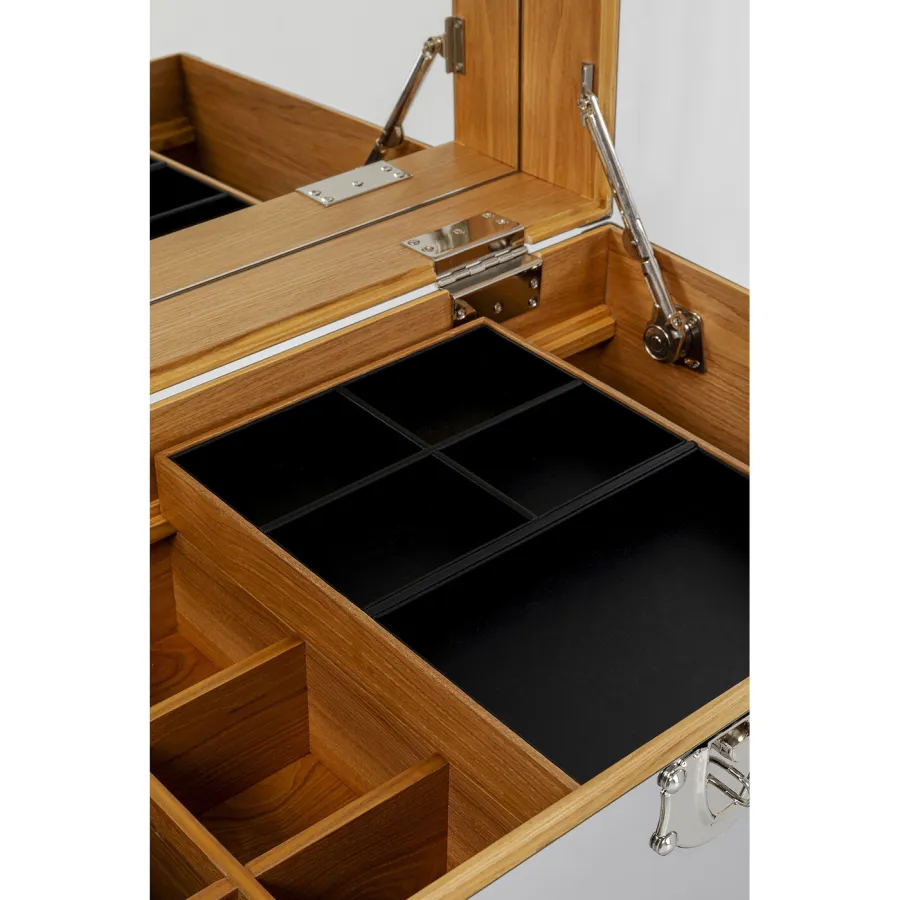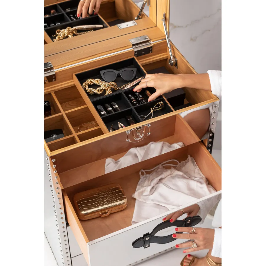Korpus: Płyta pilśniowa średniej gęstości (MDF) Naturalna/nieobrobiona, Sklejka lakierowana, Rolka: Stal ocynkowana, Okucia: Stal miedziowana, Pokrycie: Stal nierdzewna lakierowana