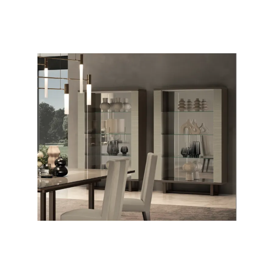 Serię uzupełniają witryny, komody i lustra – zaprojektowane tak, aby tworzyć spójną, przyjazną i stylową przestrzeń jadalni lub salonu.