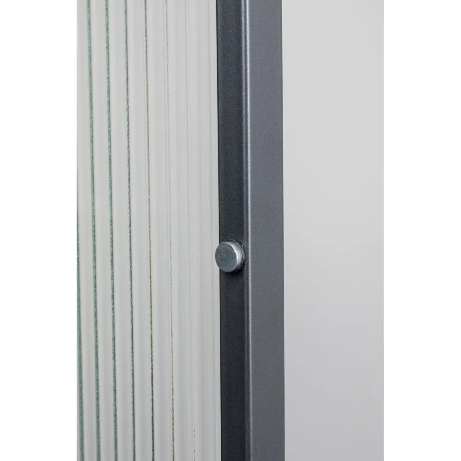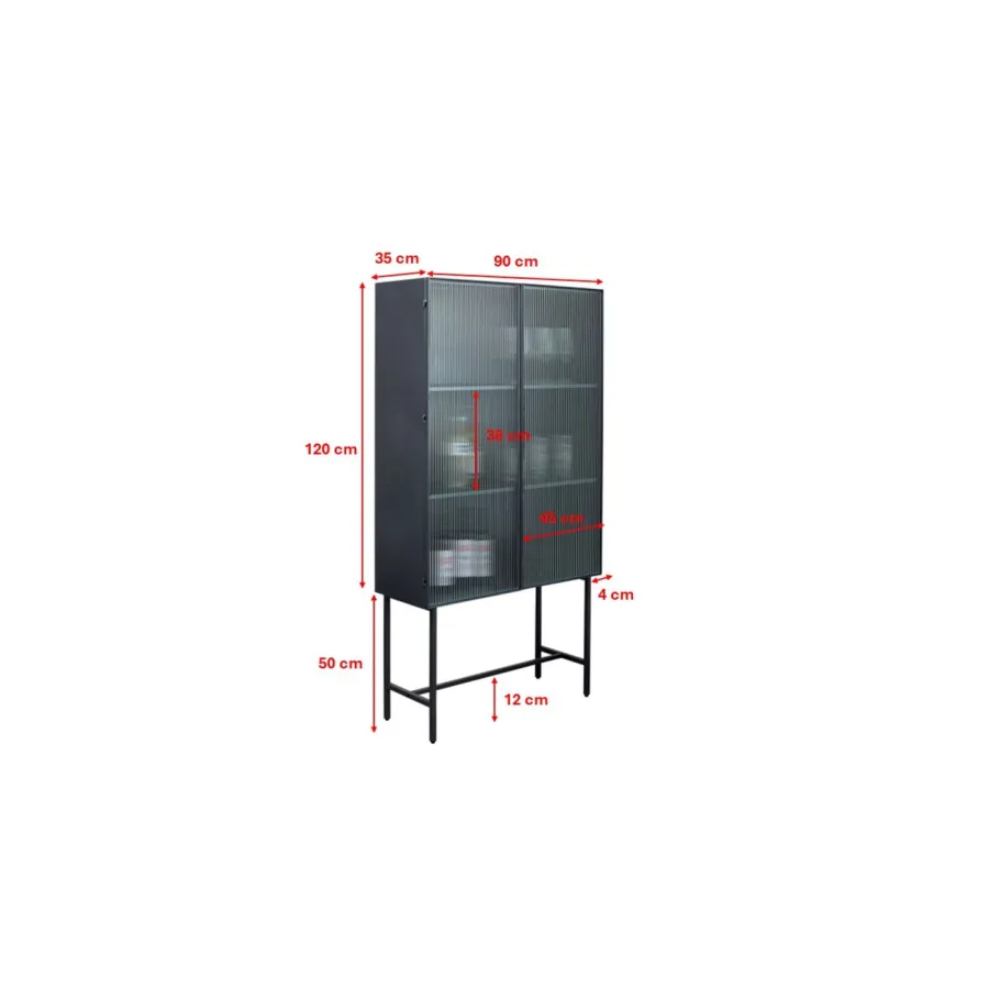 Korpus: Stal malowana proszkowo, Stopa/Podstawa: Stal malowana proszkowo, Półka: Stal malowana proszkowo, Drzwi: Szkło Hartowane szkło bezpieczne Przezroczyste, Stal malowana proszkowo, Półka: 15 kg Max. nośność, Półka: Montowana na stałe