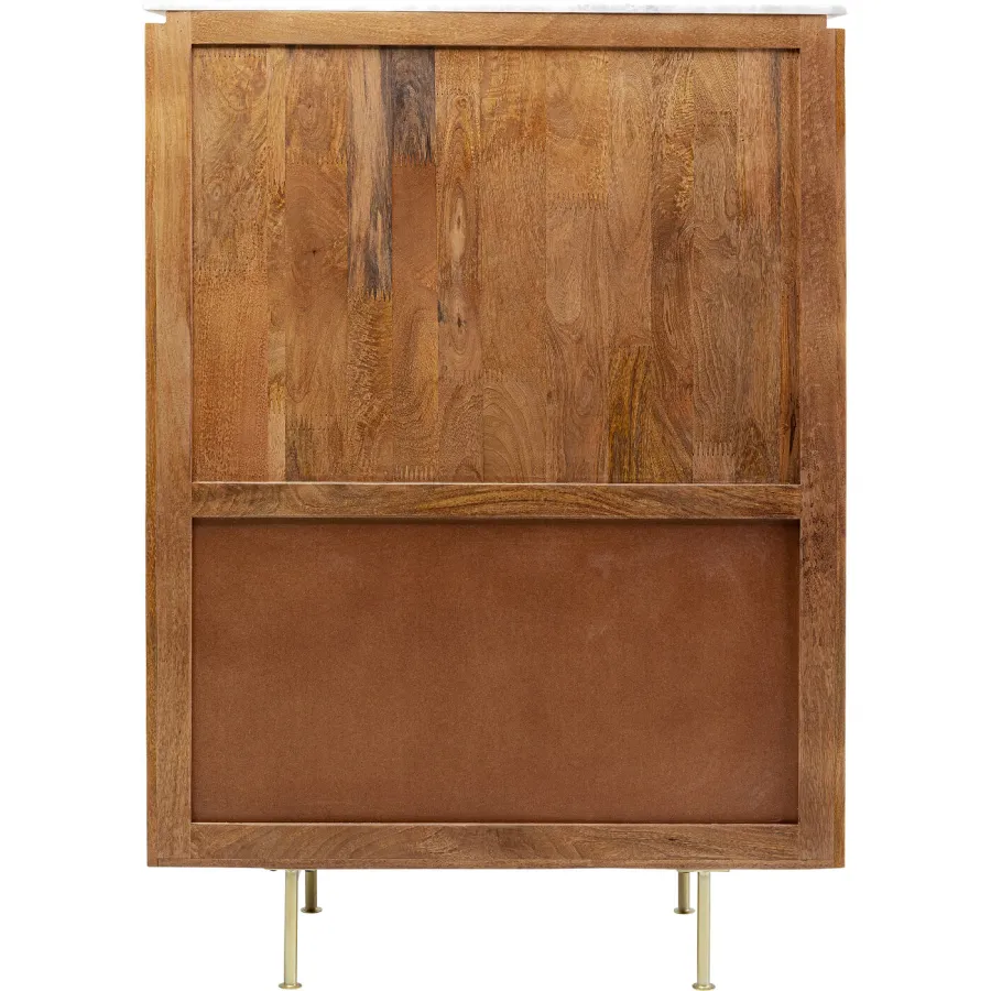 Nowoczesna, elegancka i z odrobiną luksusu ta szafka niska przeniesie Twoją przestrzeń mieszkalną na wyższy poziom pod względem wyposażenia wnętrza. Połączenie przetworzonych materiałów jest spektaklem samym w sobie. Wykonane z litego drewna mango, z wysokiej jakości marmurowym blatem i złotymi nogami, te meble do salonu są pełne stylu. Owalny kształt z ozdobnymi wykończeniami po bokach również dodaje wykończenia. Nie bez powodu tablica TV jest dziełem wyjątkowym dzięki ręcznemu wykonaniu. W salonie lub jadalni: szafka RTV jest uniwersalna i oferuje wystarczająco dużo miejsca na elektronikę i dokumenty dzięki dwóm drzwiom i jednej szufladzie - dodatkowo zawiasy są regulowane